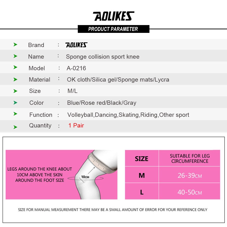 AOLIKES 1 Pair Outdoor Non-Slip Knee Pads Thickened Football Volleyball Extreme Sports Sponge Support Brace