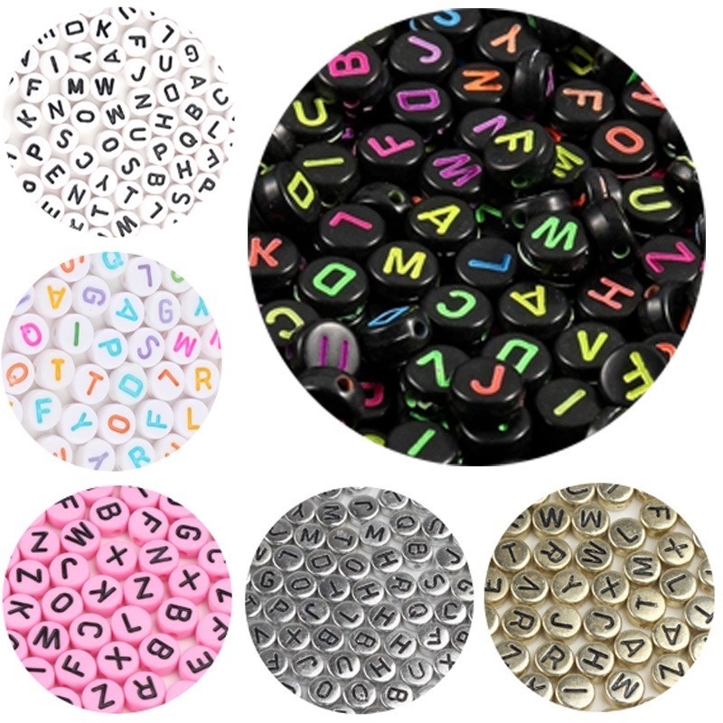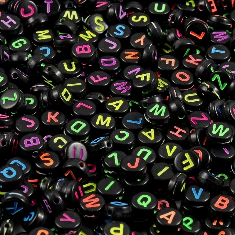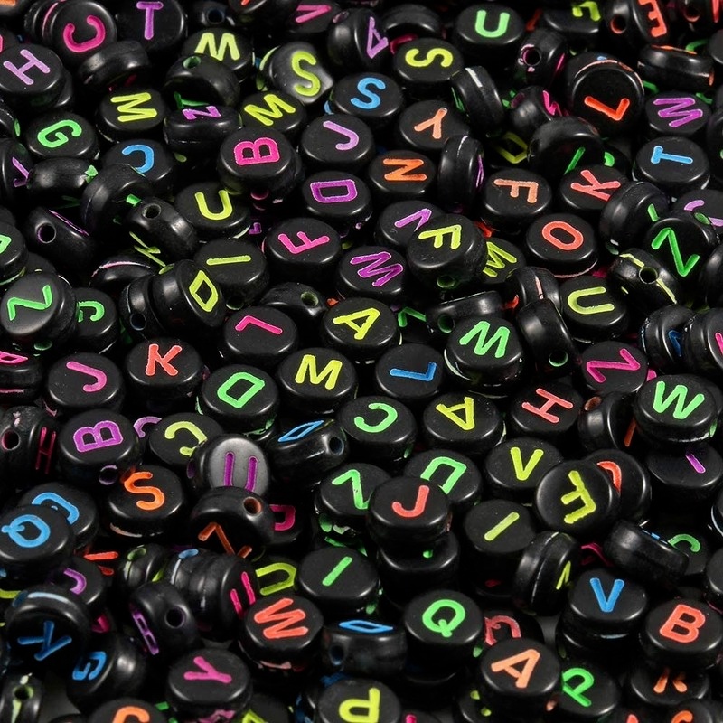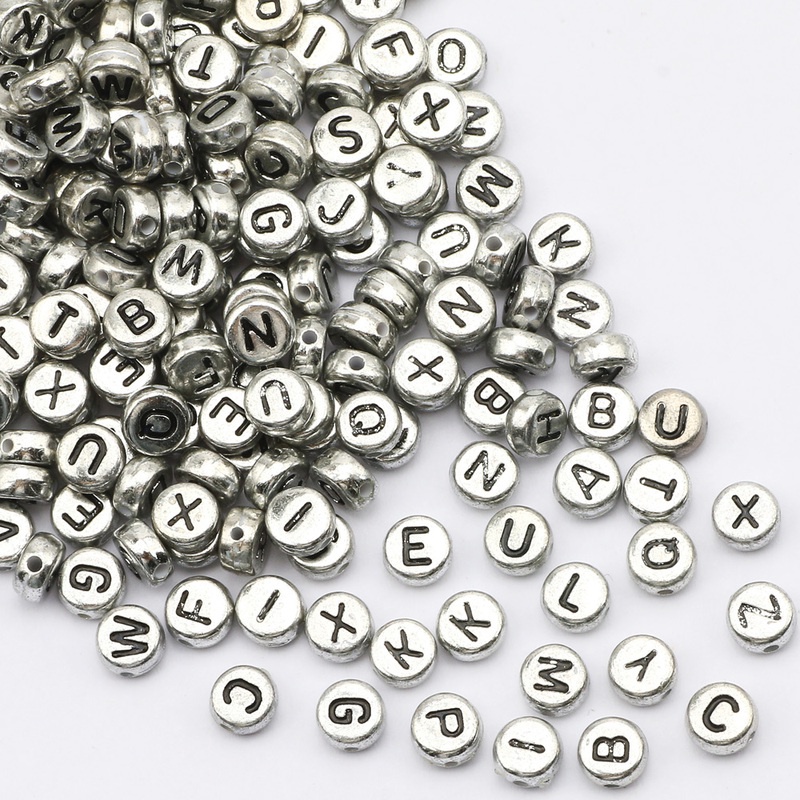 100pcs Black English Letter Acrylic Beads Bead Mixed Flat Alphabet Spacer Loose Beads for Bracelet for Jewelry DIY
