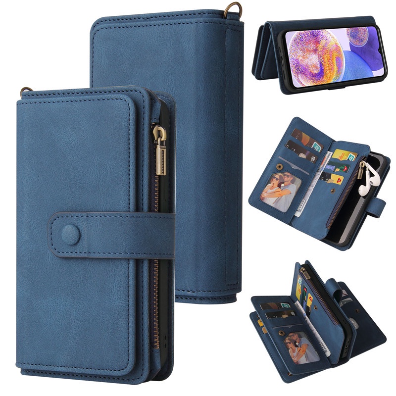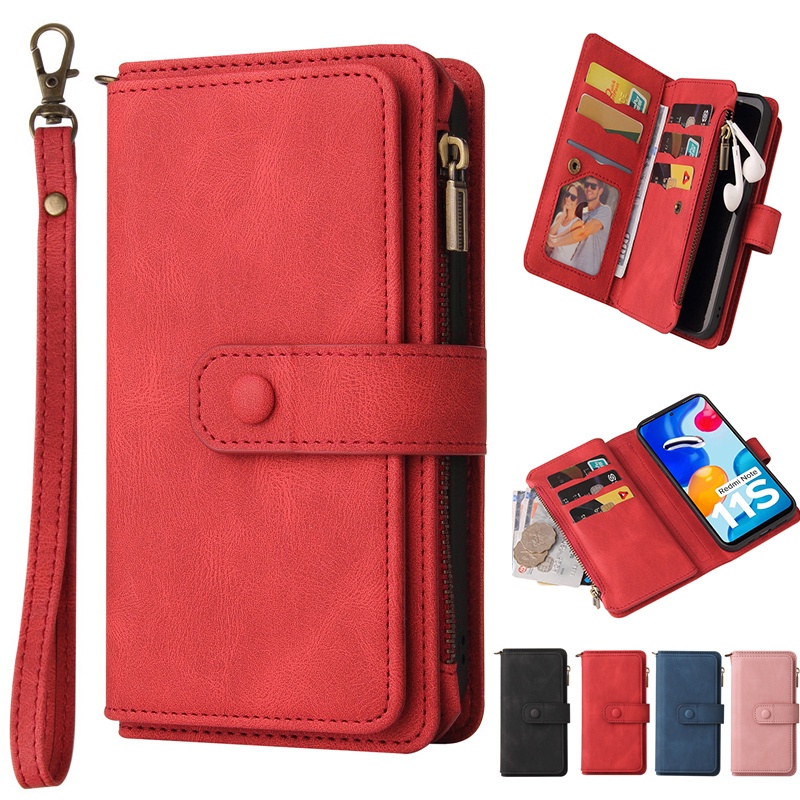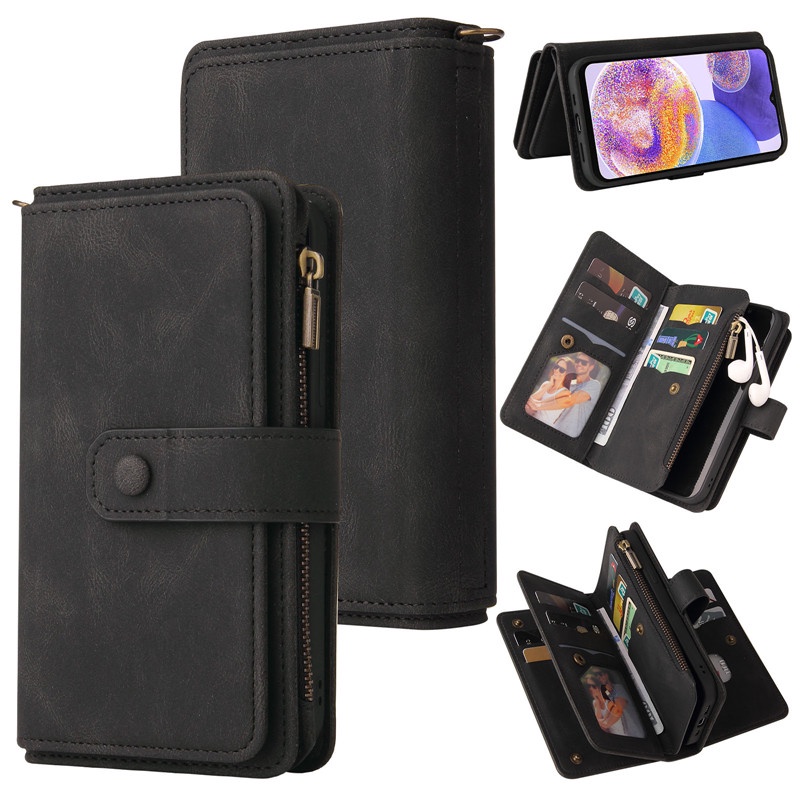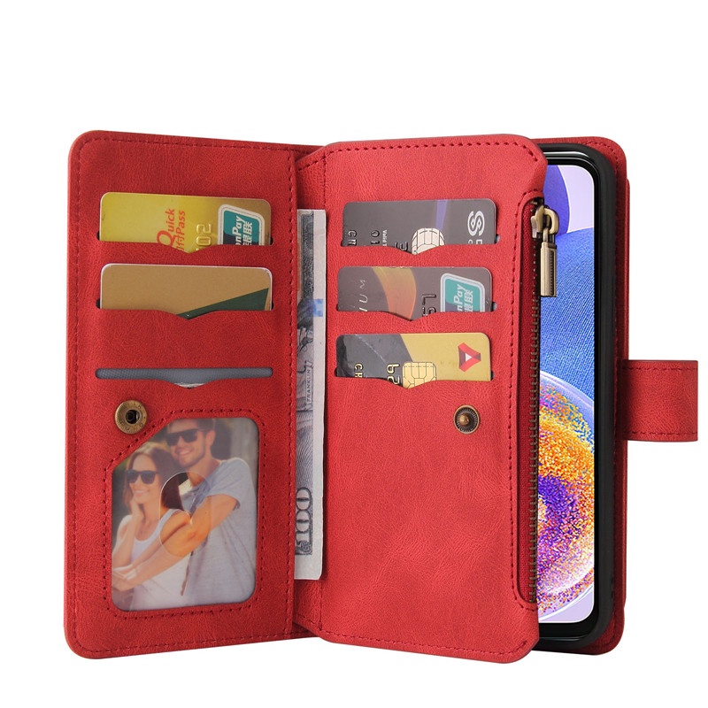 OPPO 15 Card Slots 2022 Newest A73 A96 A94 A93 A92S A76 A74 A73 A72 4G5G Leather Case Wallet Flip Bracket Skin Feel Card Package Phone Case Position Kick Stand