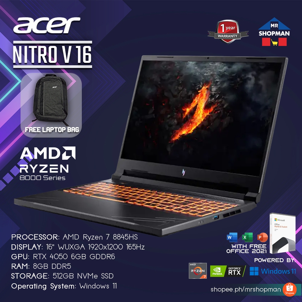 Acer Nitro V ANV16 41 R3RP Ryzen 7 8845HS | 16" 165Hz | 8GB DDR5 | RTX4050 | 512GB Gaming Laptop