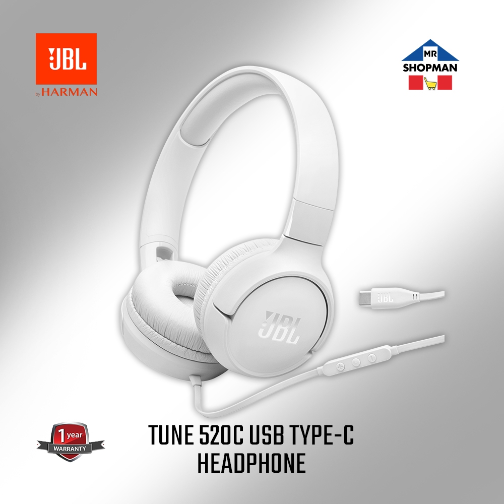 JBL Tune 520C USB Type C Wired On Ear Headphones Headset White