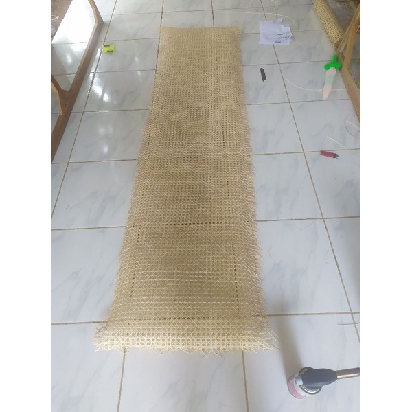Rattan woven sheet with round flower motif