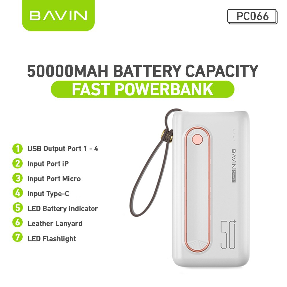 BAVIN PC053S / PC066 60000mAh 22.5W Fast Charging Heavy Duty Powerbank w/Flashlight & Built-in Cable