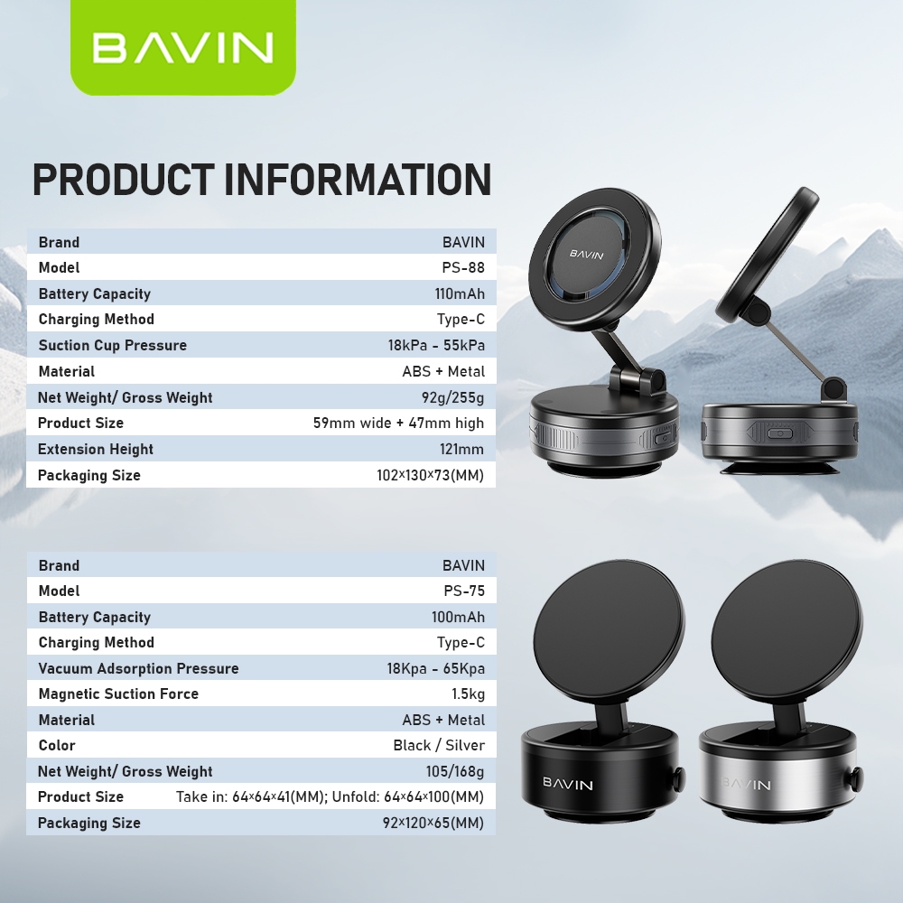 BAVIN PS75 / PS88 Magnetic Vacuum Phone Holder w/ 360 Rotation Electric Vacuum Mount for Smartphones