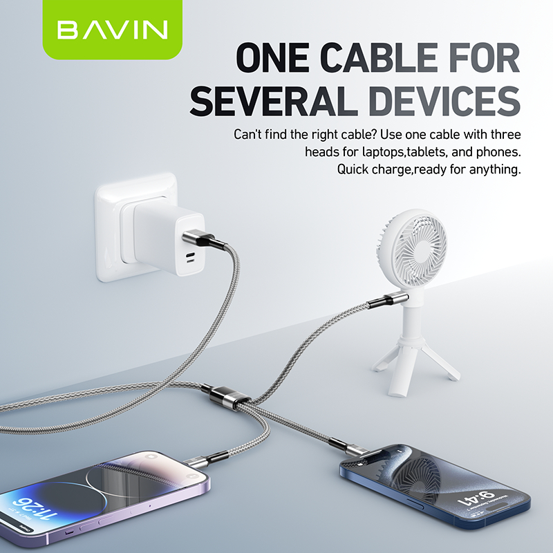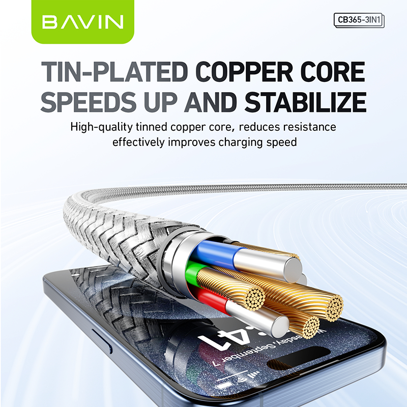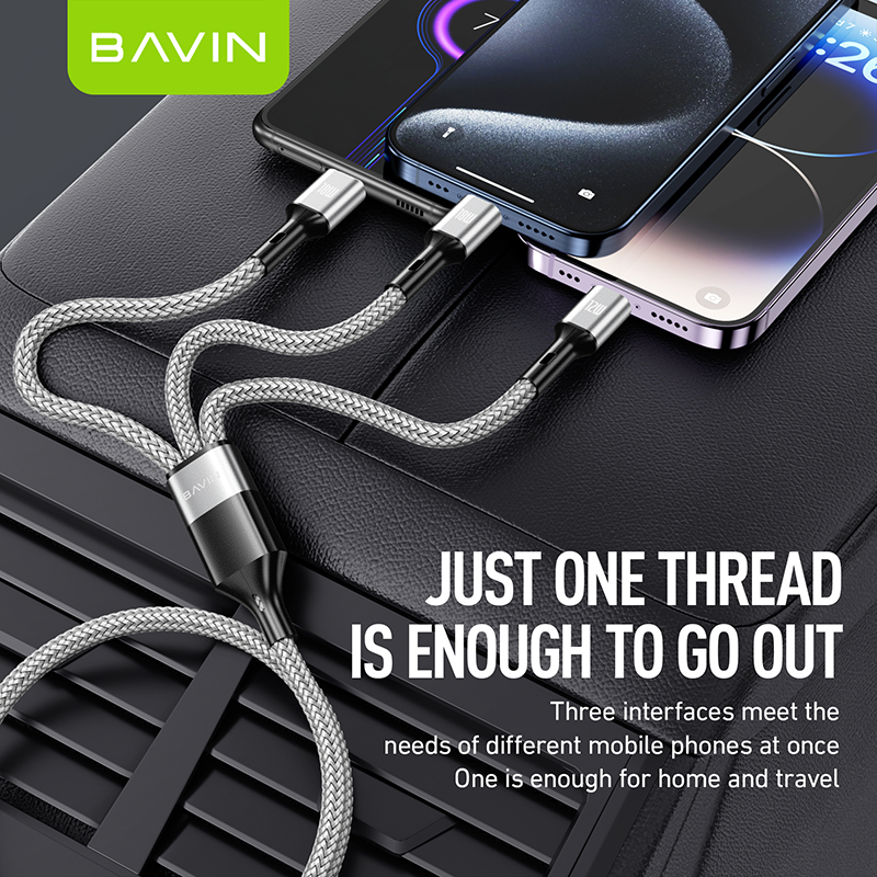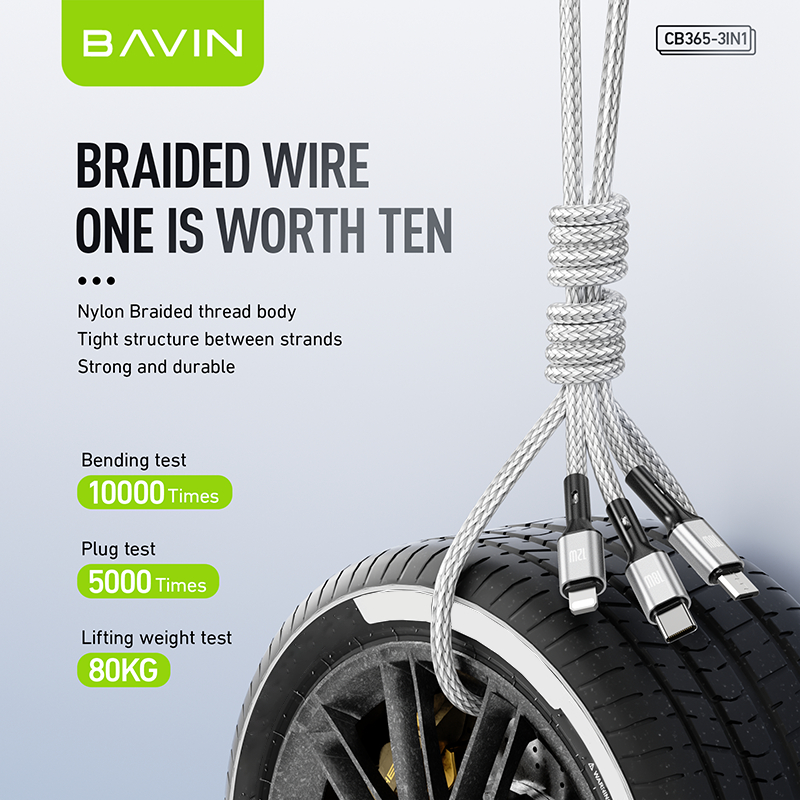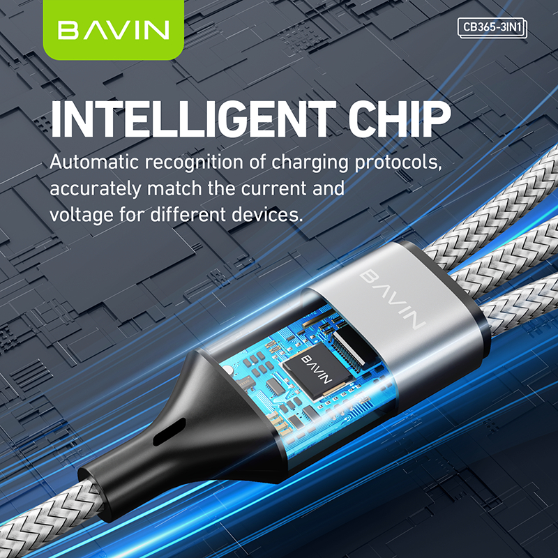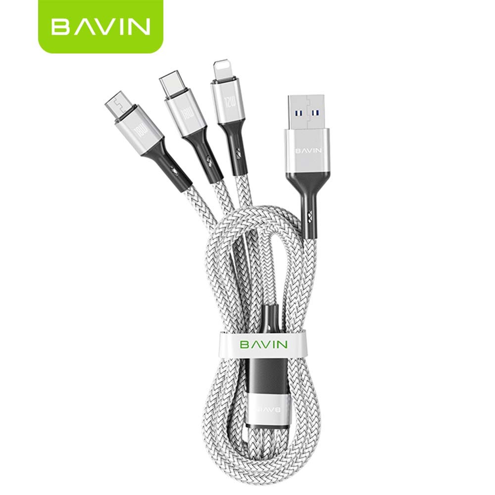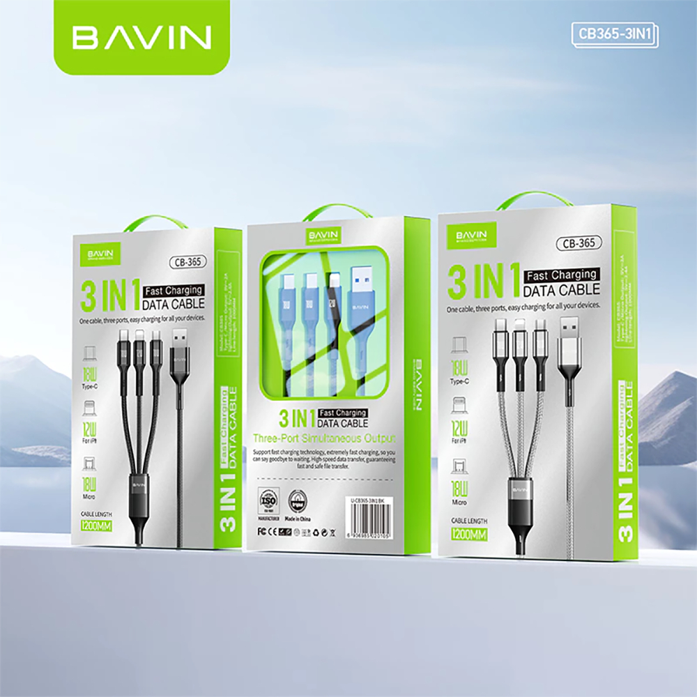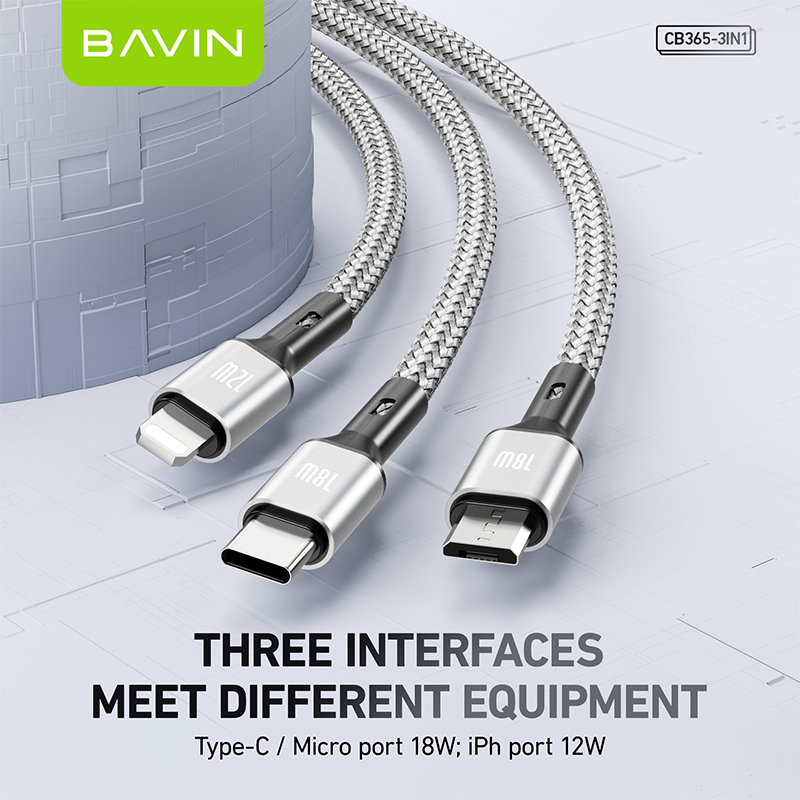 BAVIN CB365 3-in-1 Fast Charging Cable Nylon Braided 3A 480Mbps Data Transfer for Type-C/Micro/iP