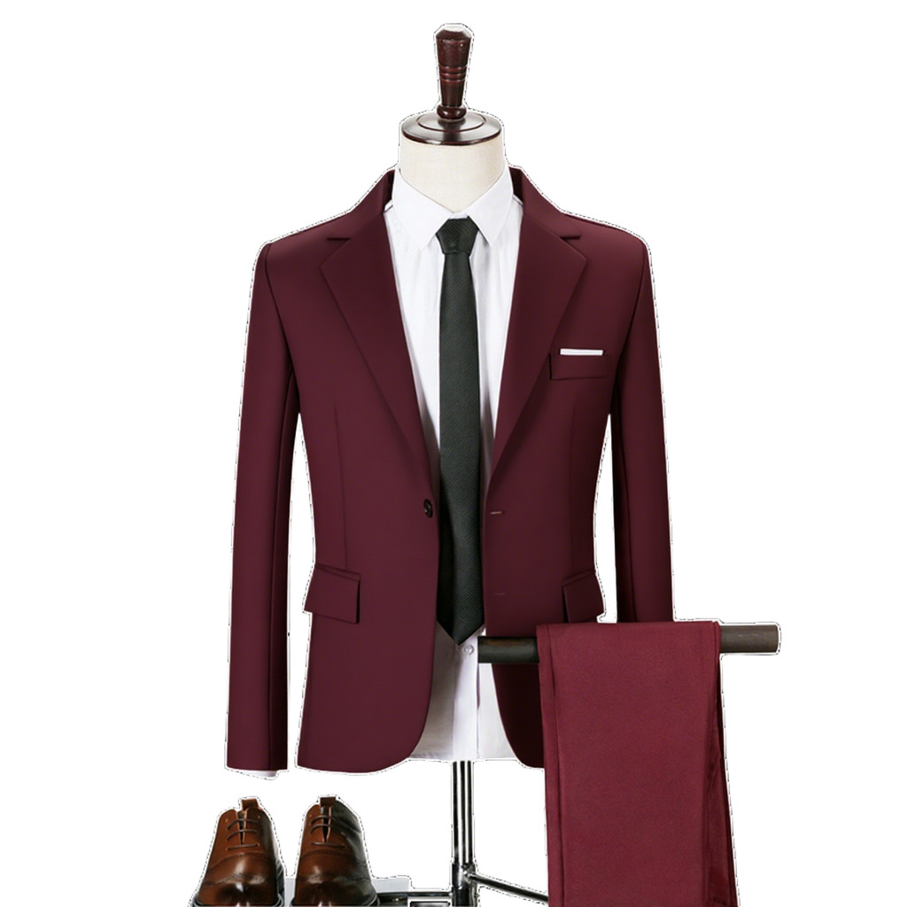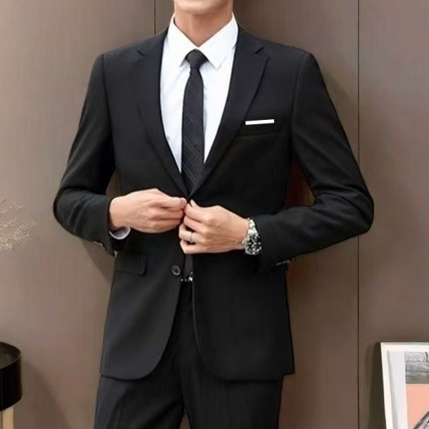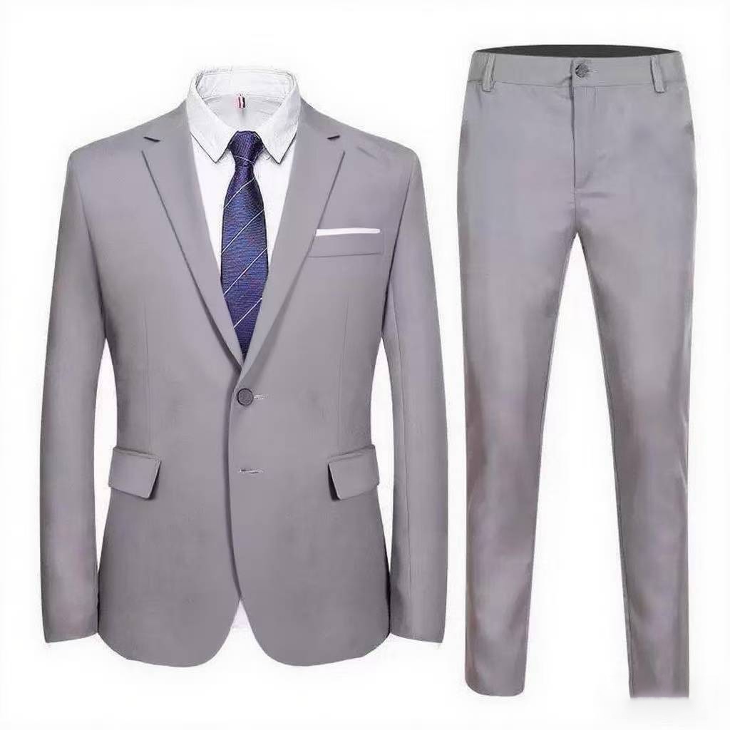 【Local Delivery】Tuxedo set men Coat blazer 2 piece Suit for Men Formal Gray Business Men Suits Sets