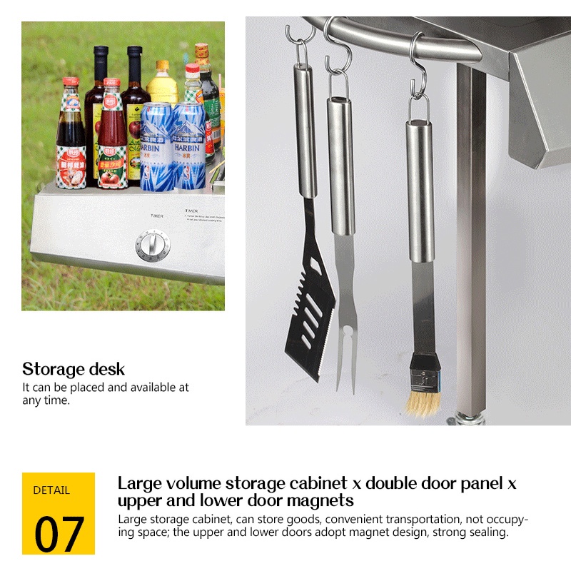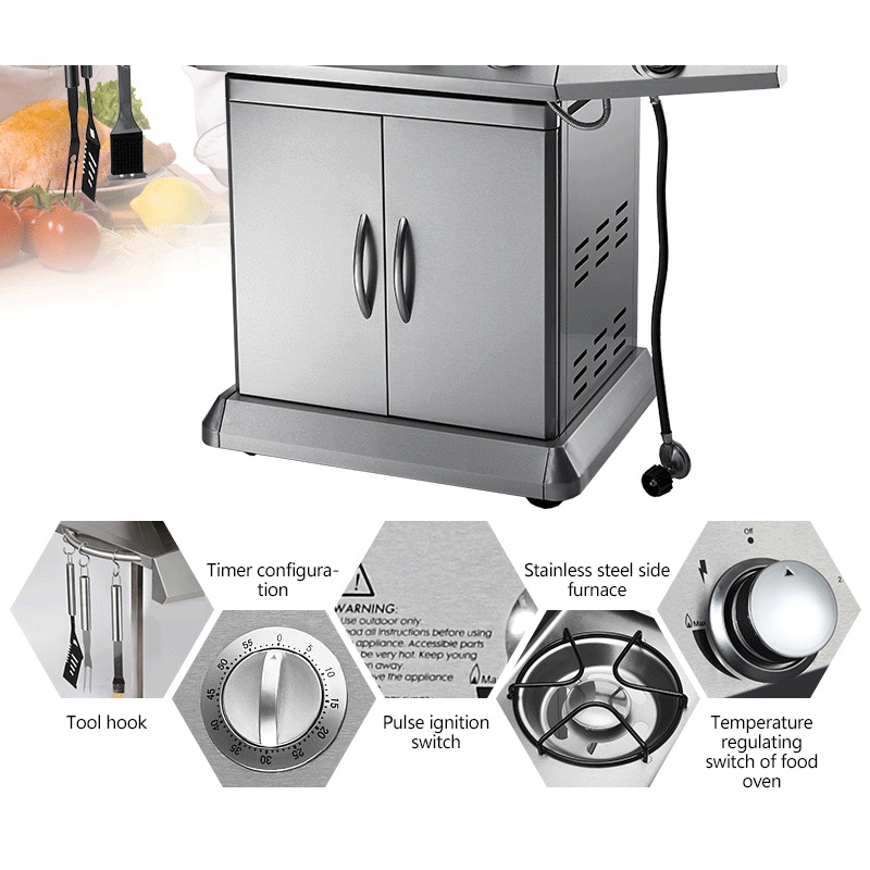 Kingkong Large Outdoor Grill Cart Gas and Charcoal Combined Grill (Stainless Steel) 2/4 Burner