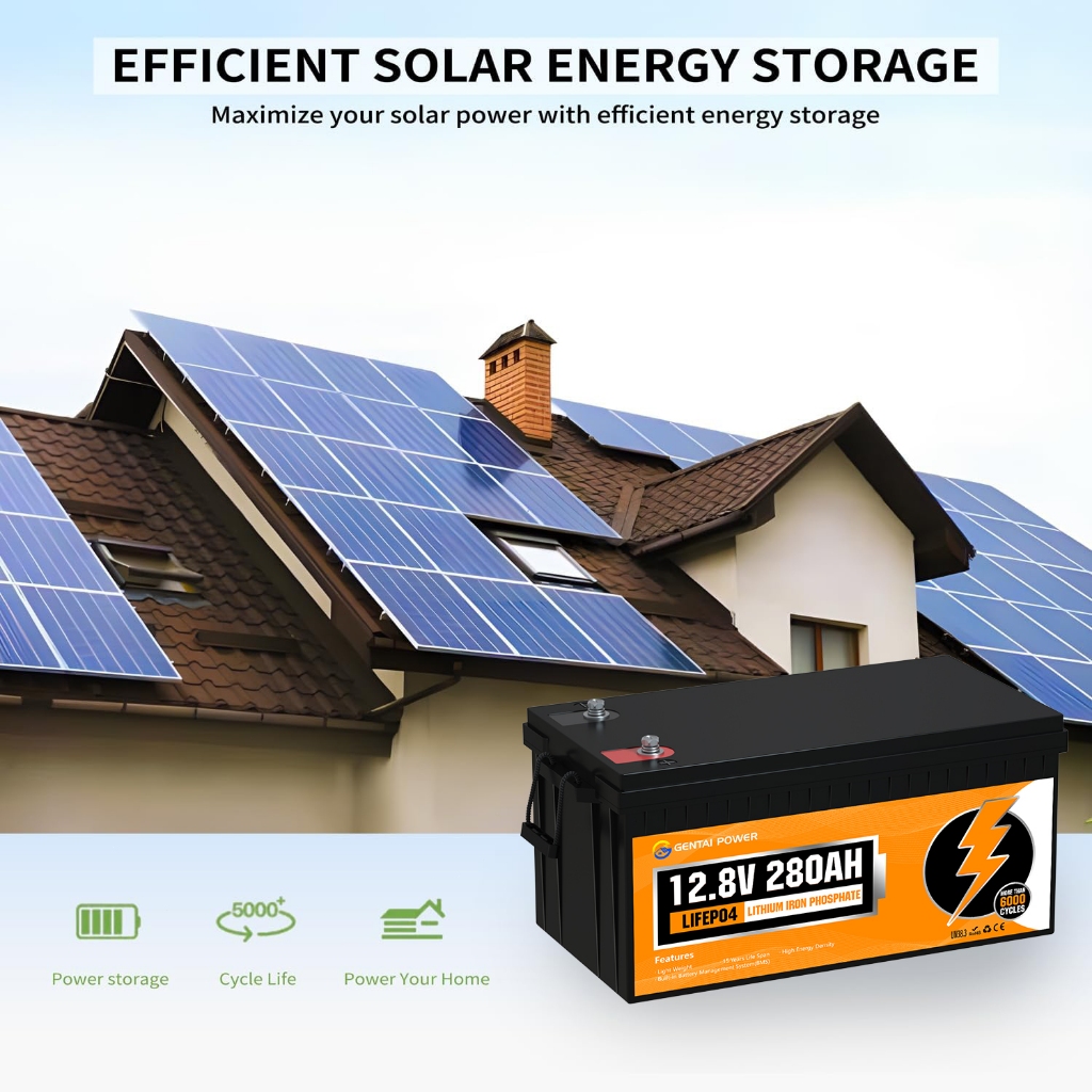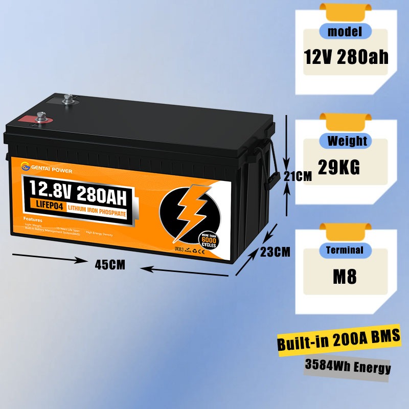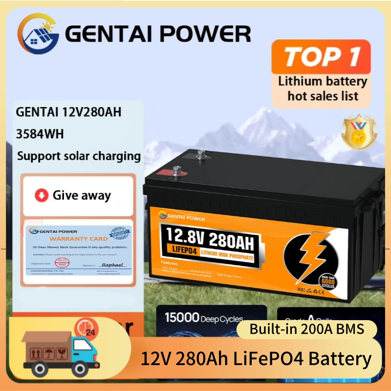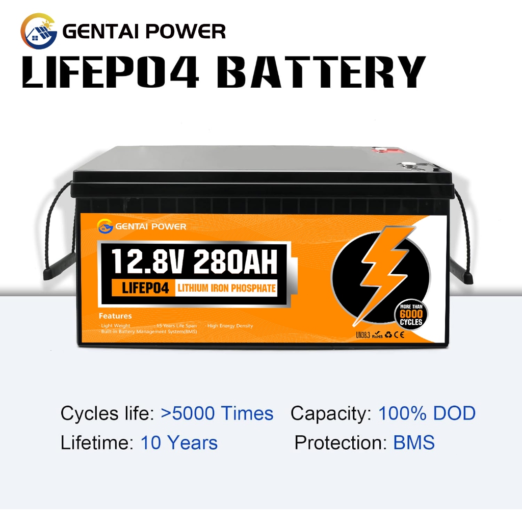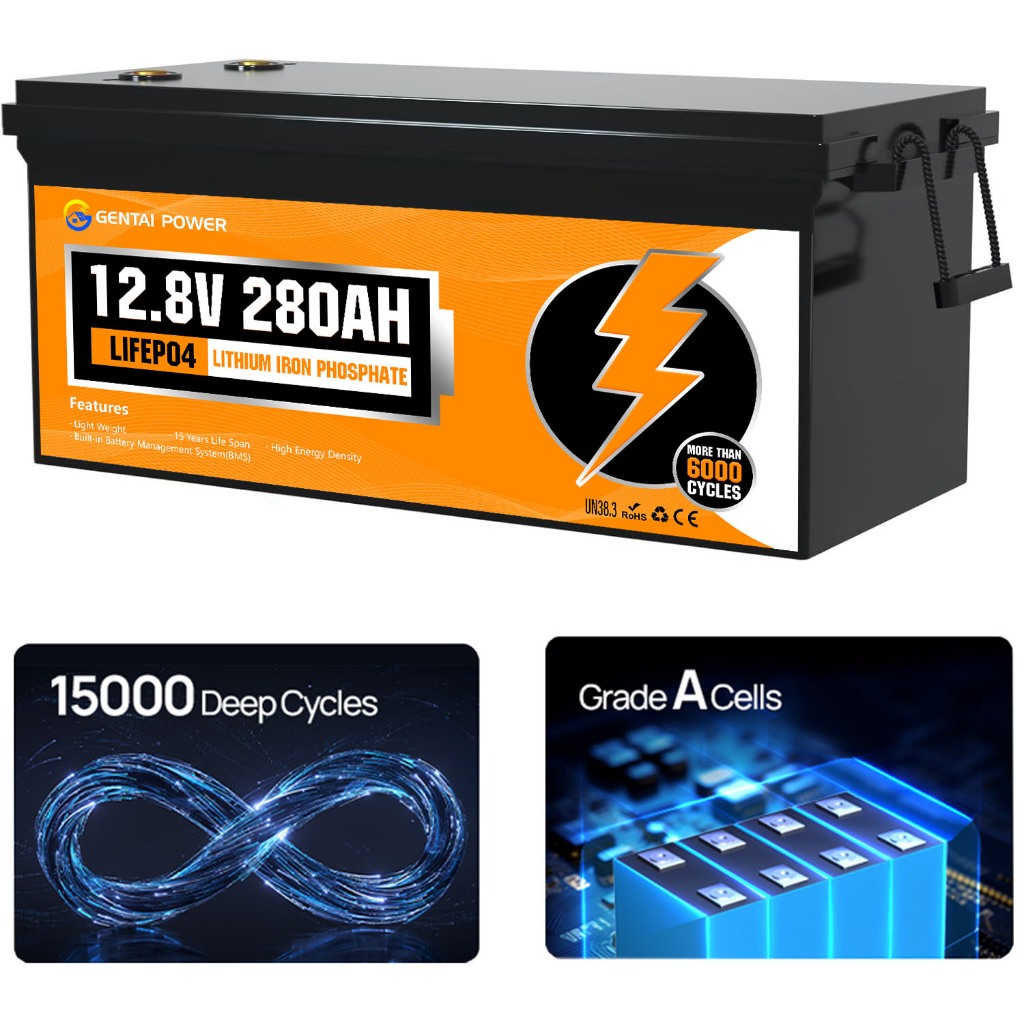 GENTAI 12V 280AH LiFePO4 Lithium Battery with Bluetooth 3584wh Energy with BMS