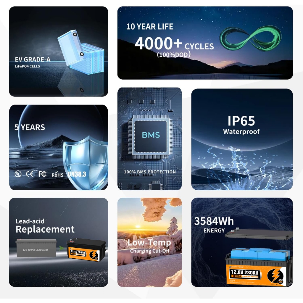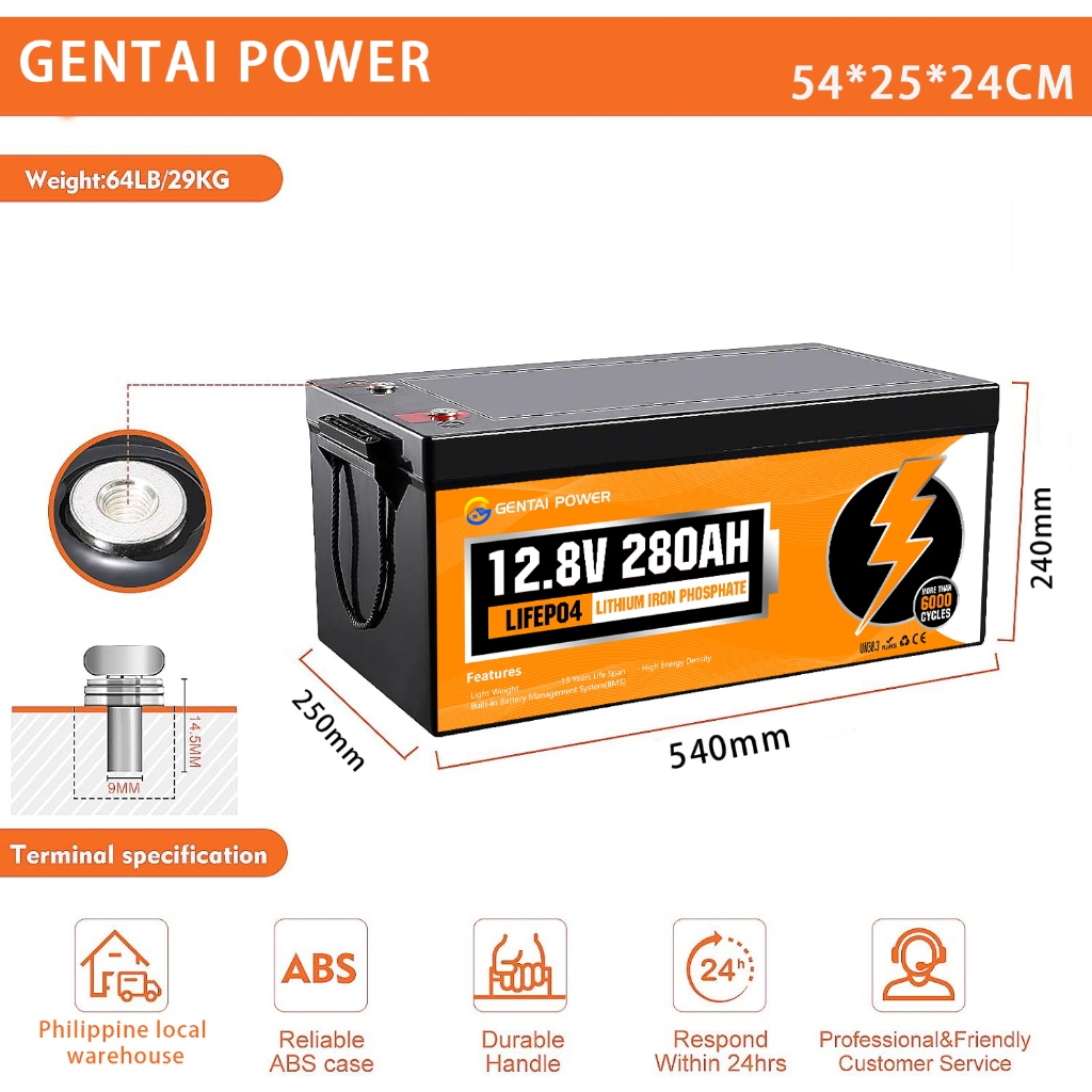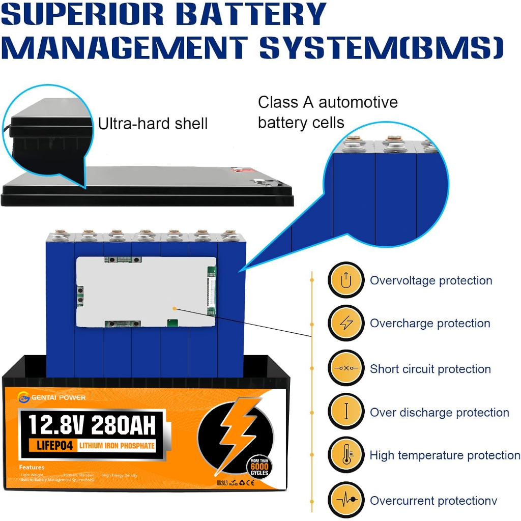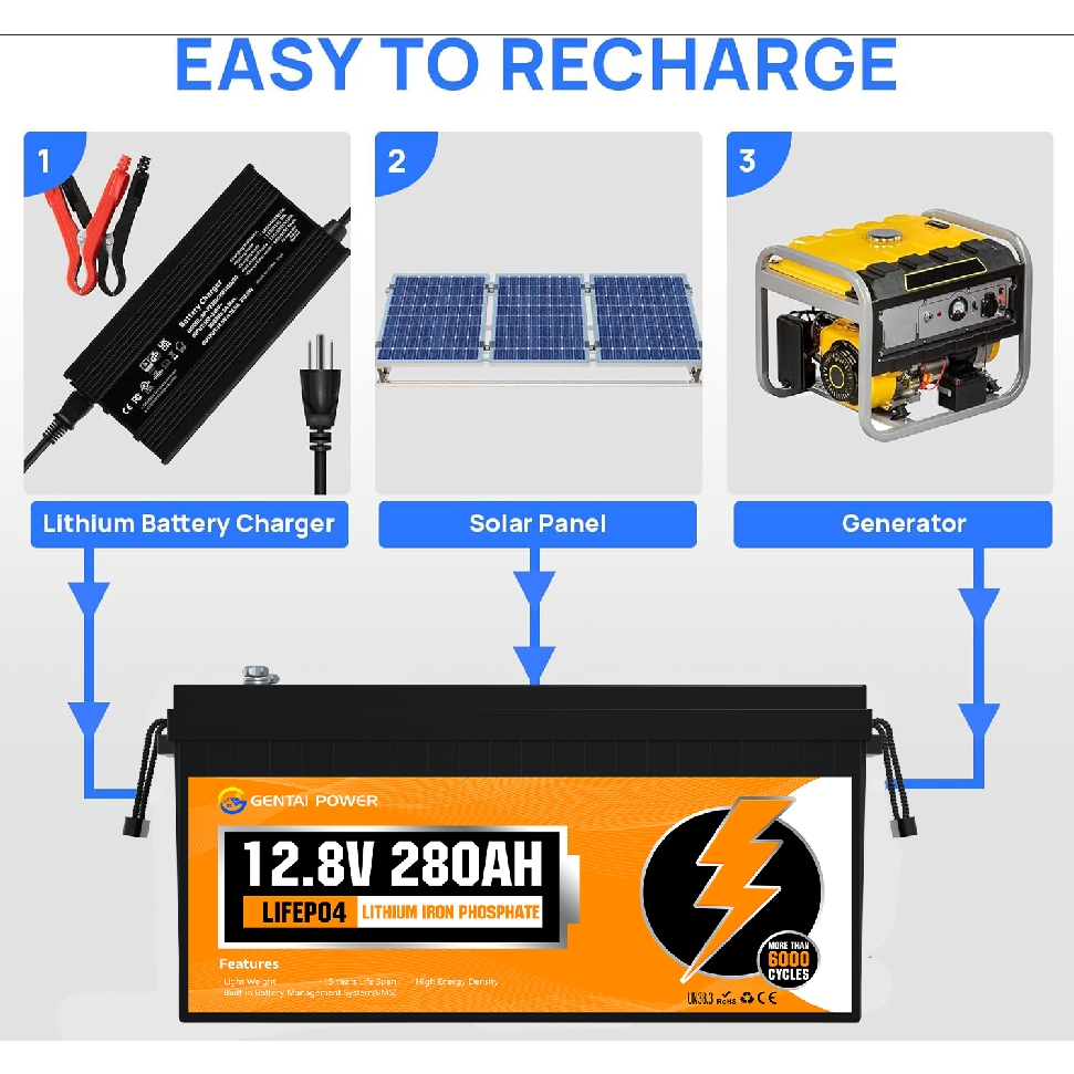 GENTAI 12V 280AH LiFePO4 Lithium Battery with Bluetooth 3584wh Energy with BMS
