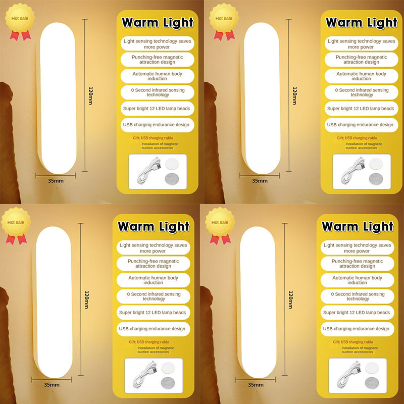 [Local Shipment] 4pcs Led Induction Light Motion Sensor Cabinet Light Wireless Led Night Lights Usb Rechargeable Stair Lamp
