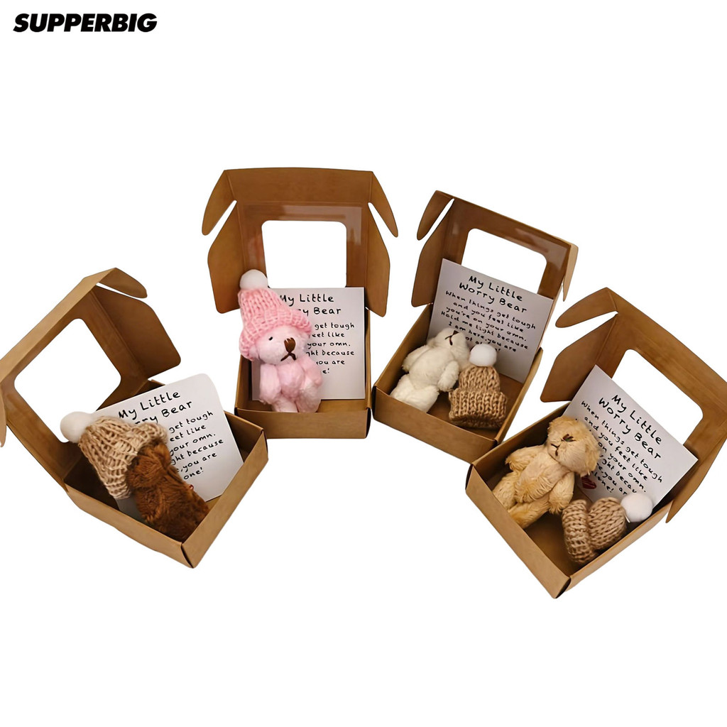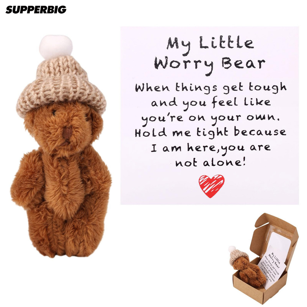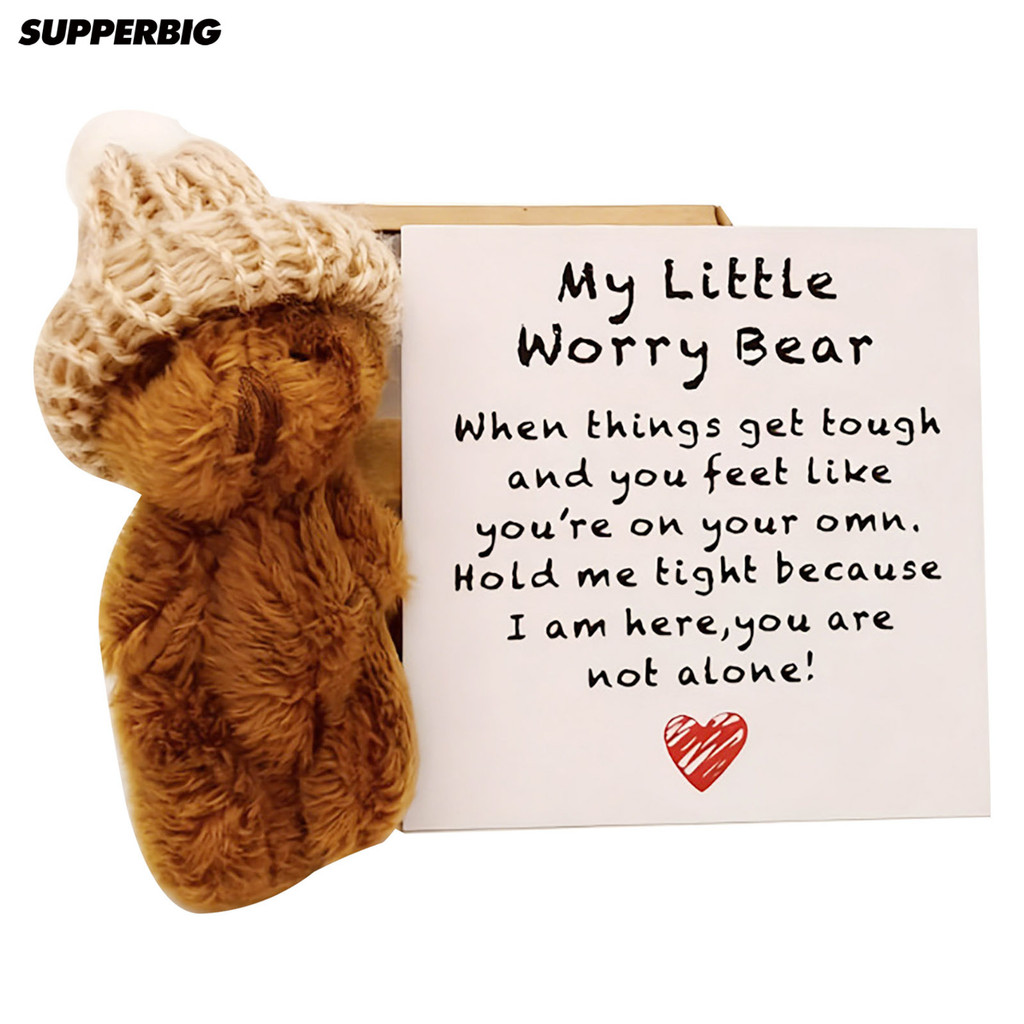Supperbig☃Mini Plush Bear Doll My Little Worry Bear Handmade Gift with Inspirational Card Pocket Bears Hug Plush