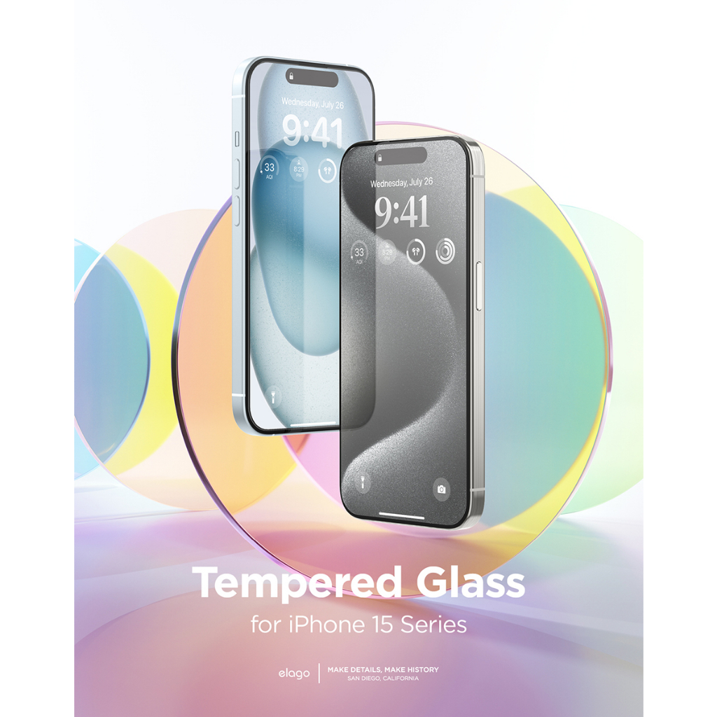 Elago Tempered Glass Screen Protector Compatible for iPhone 15 Series and Device Not Included