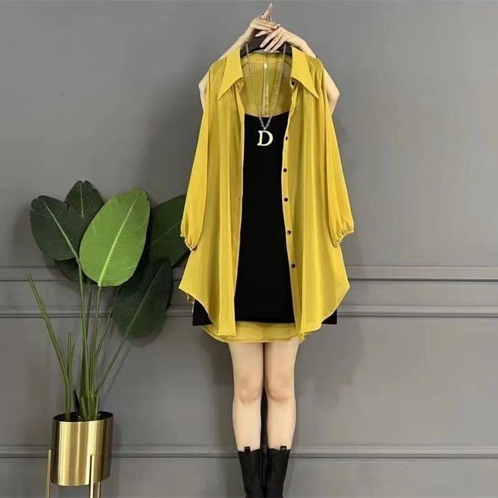 [Loss Sale] Plus Size Women's Clothing 2024 Age-Reducing Cardigan Fashion Sunscreen Clothing Shirt Sling Dress Two-Piece Suit 3.29