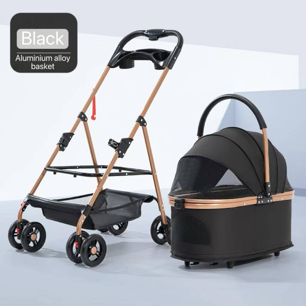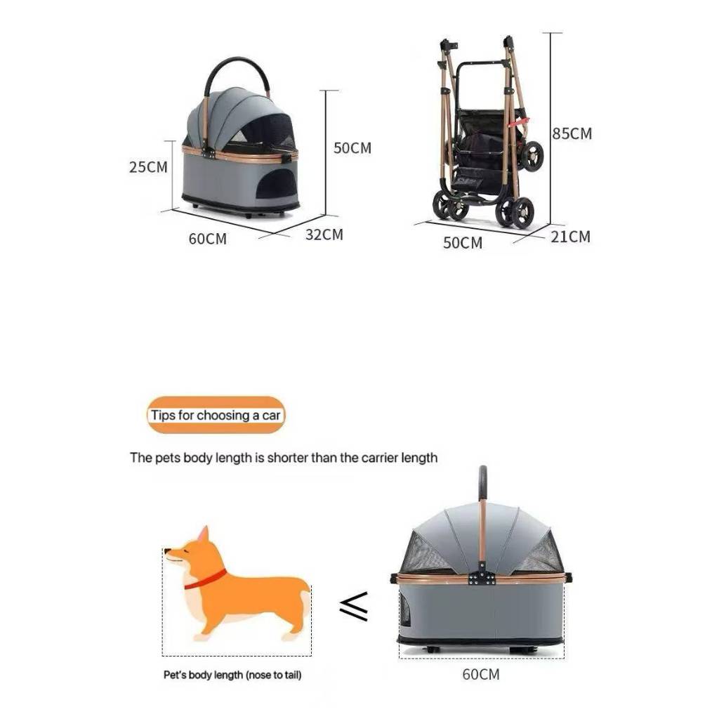 Pet Stroller 3-in-1 Detachable Dog Cat 4 Wheels Separate Car Bag Travel Trolley Removable Basket