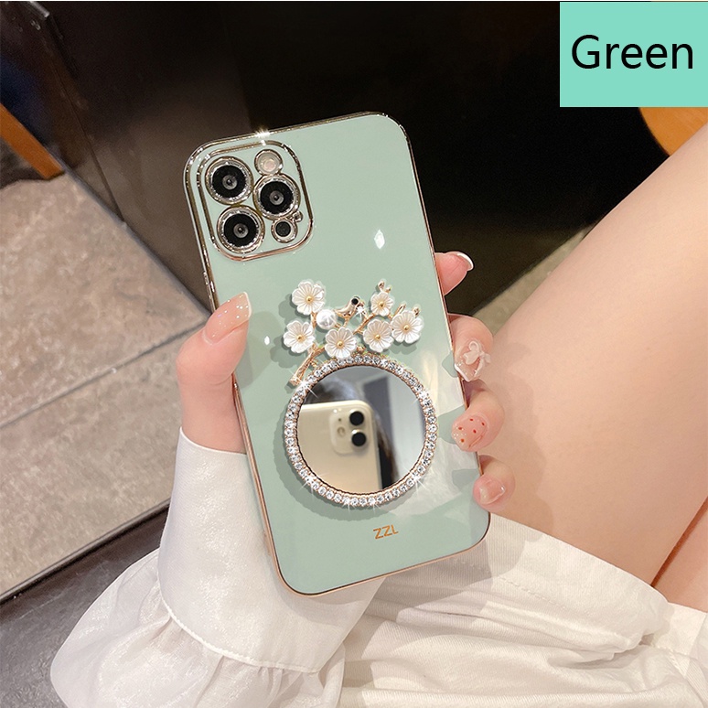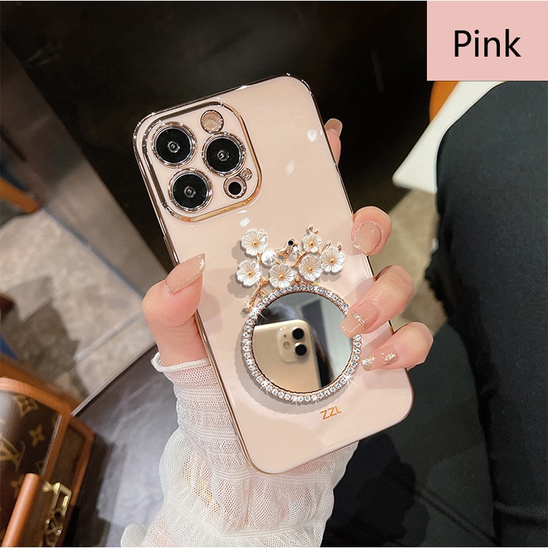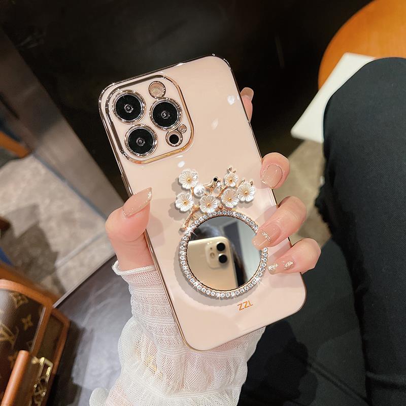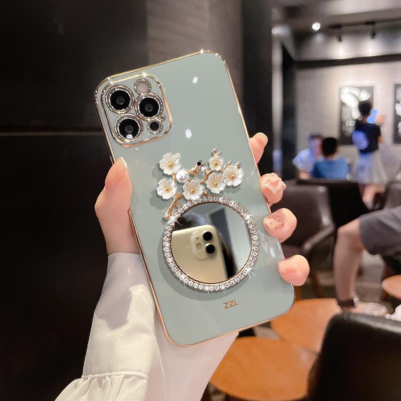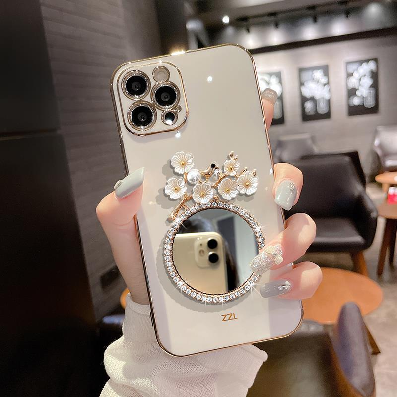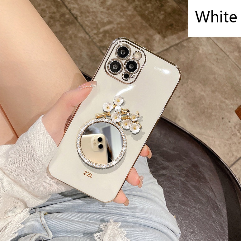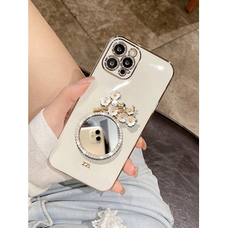 For Apple iPhone 17 Air 16 16e 15 14 13 12 11 Pro Max iPhone X XR XS Max 7 8 Plus mini Square Flower Style Mirror Diamond Bling Plating Soft Phone Case Back Full Cover Casing