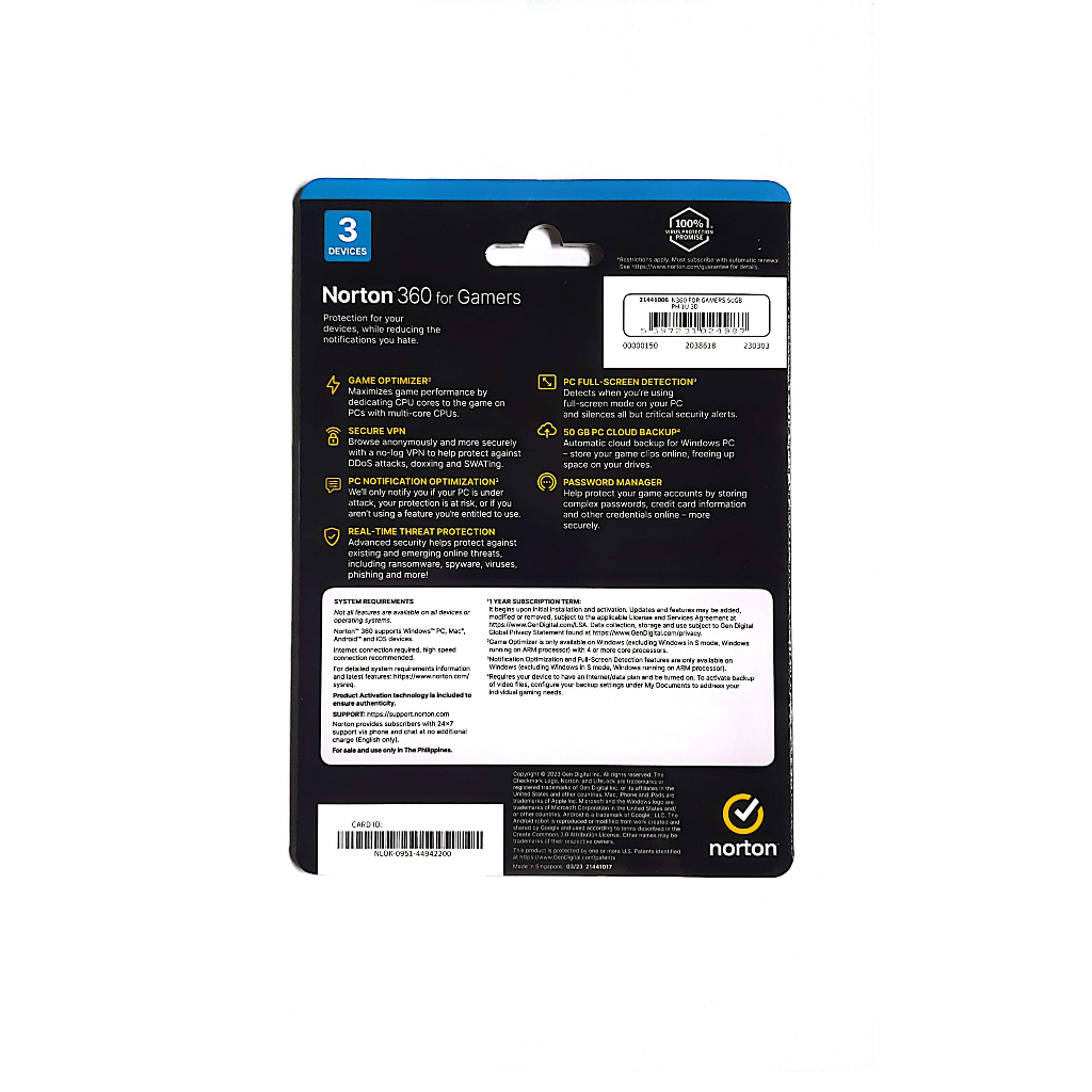 Norton 360 for Gamers (1 Year 3 Devices) for Windows, Mac, Android, or iOS