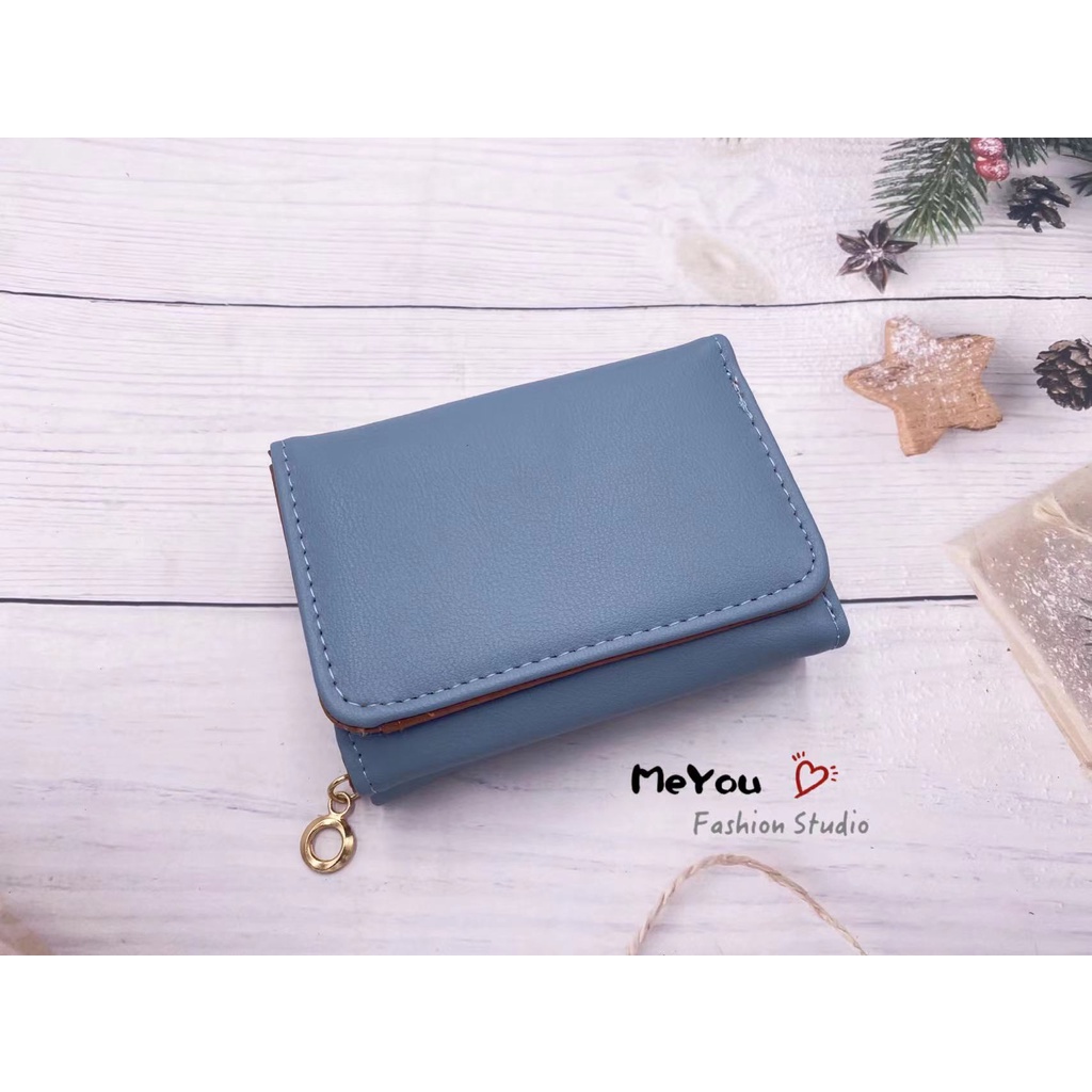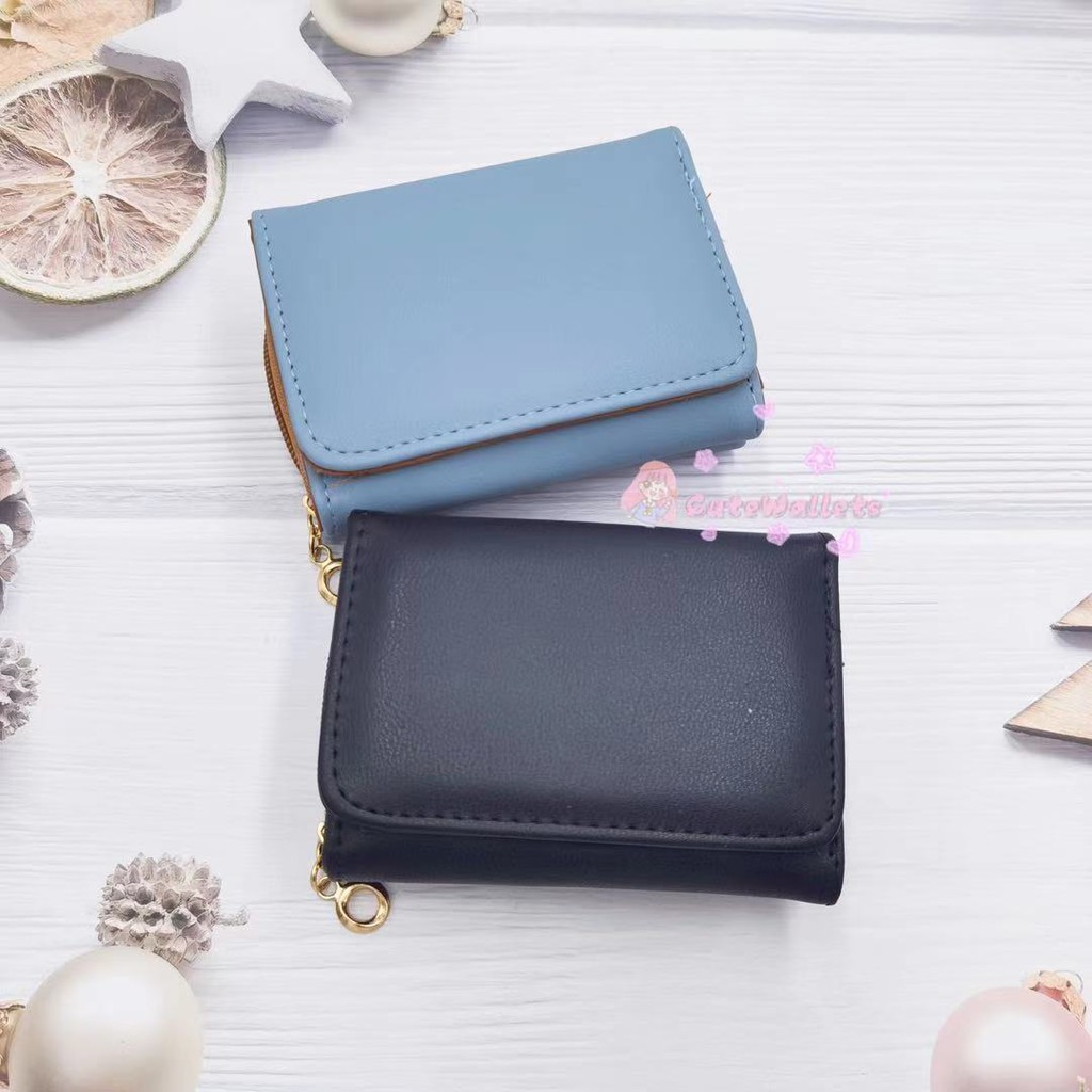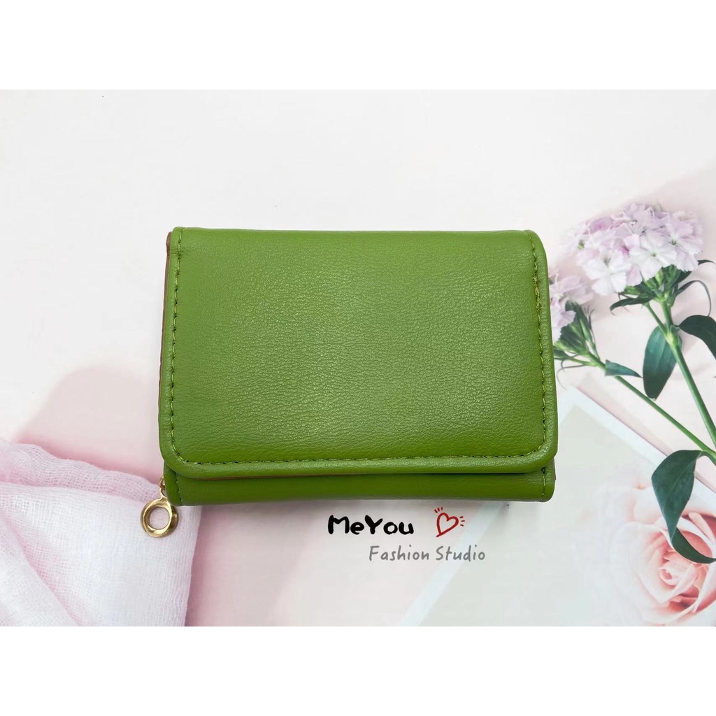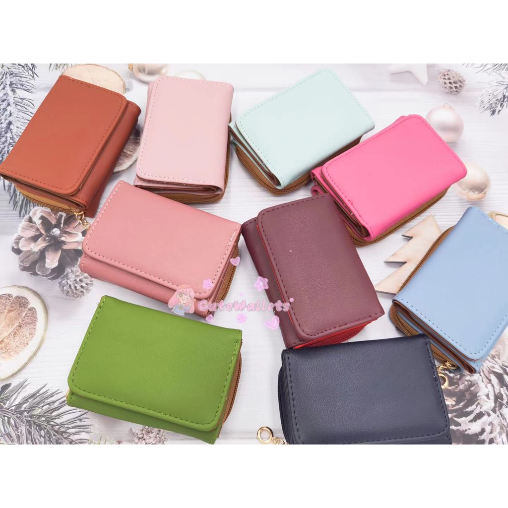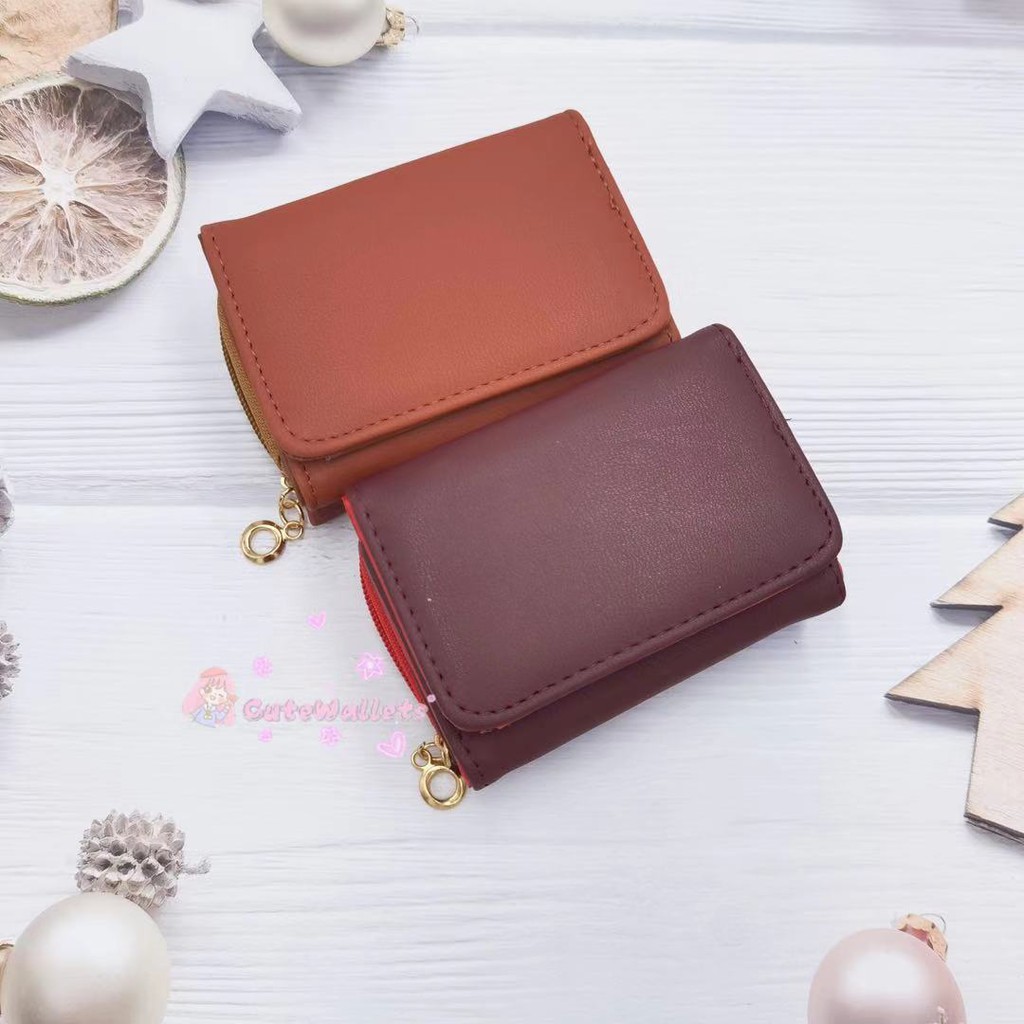 Korean style 3folds Plain colors deisgn mini coinpurse short wallet