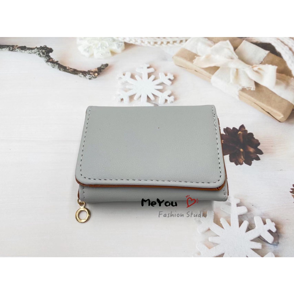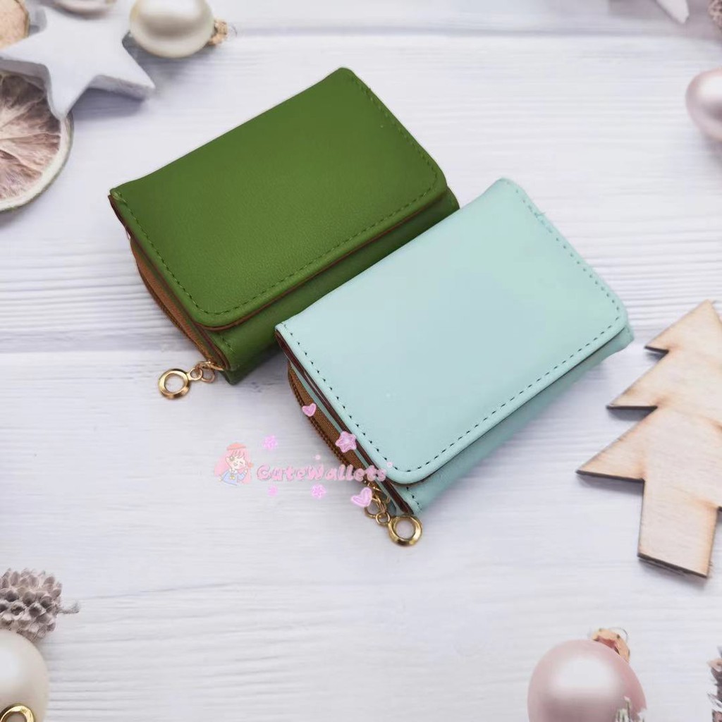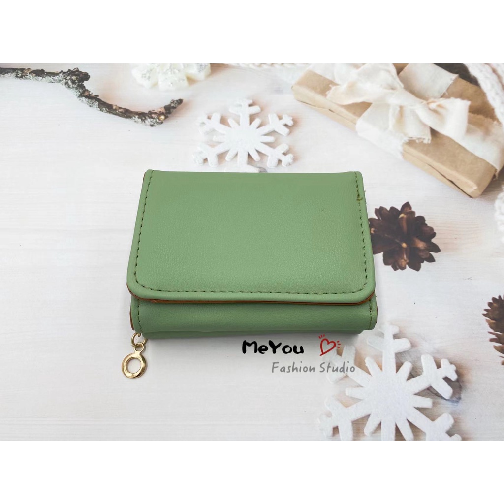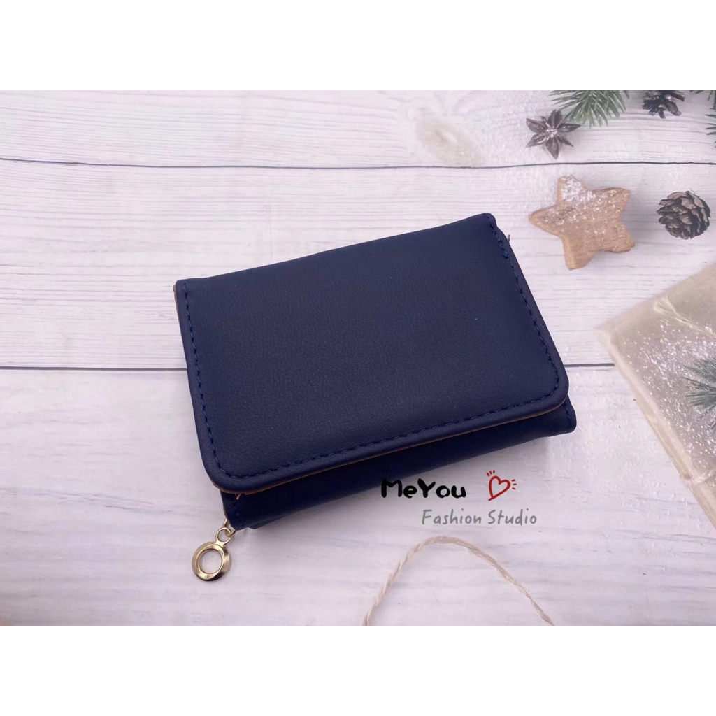 Korean style 3folds Plain colors deisgn mini coinpurse short wallet