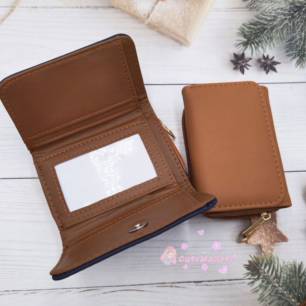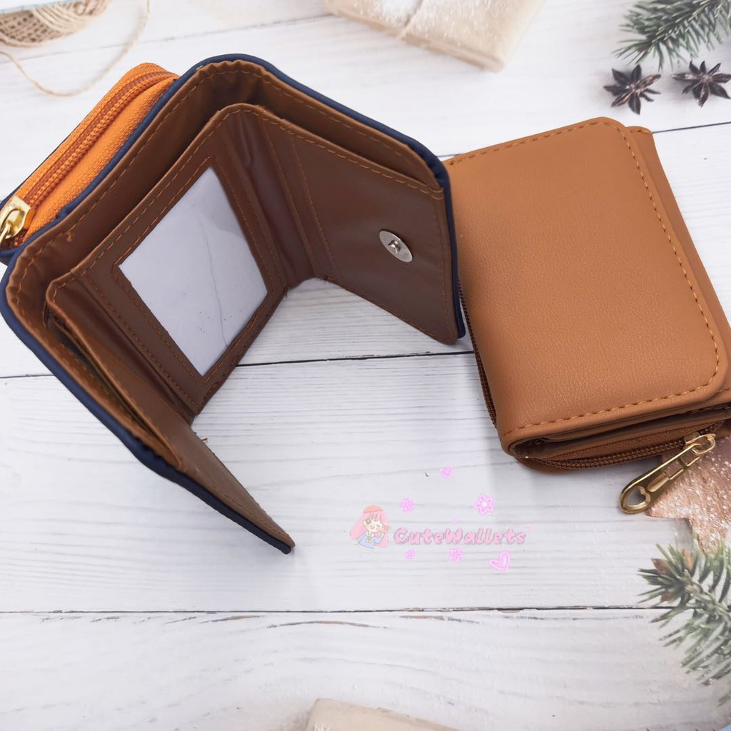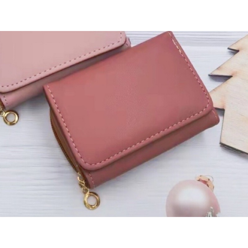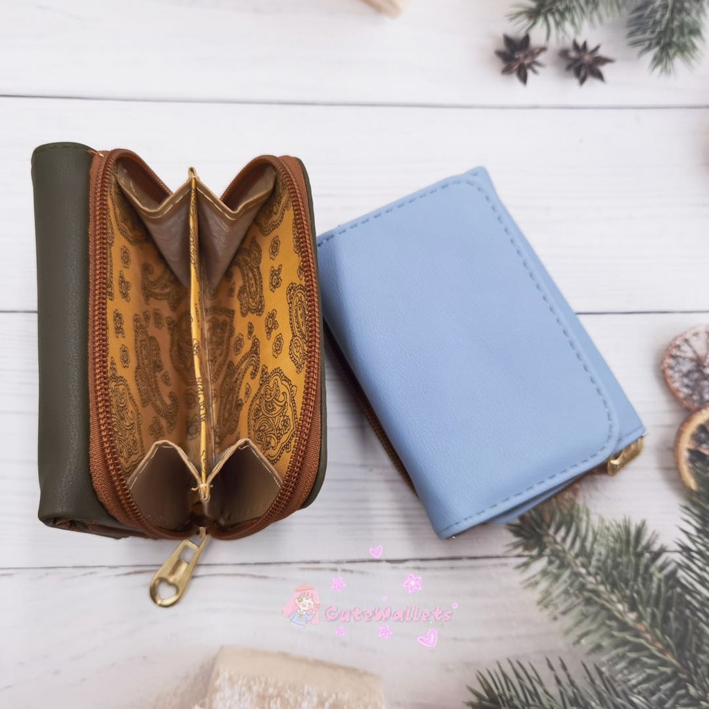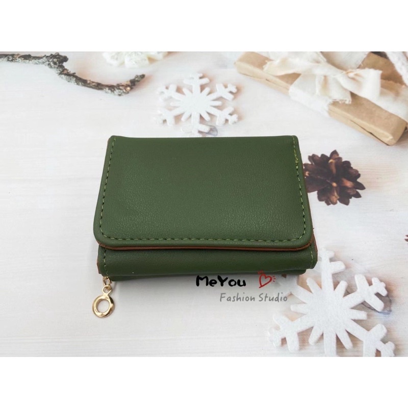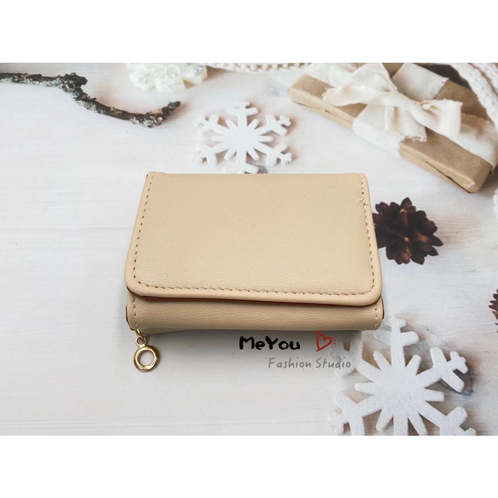 Korean style 3folds Plain colors deisgn mini coinpurse short wallet