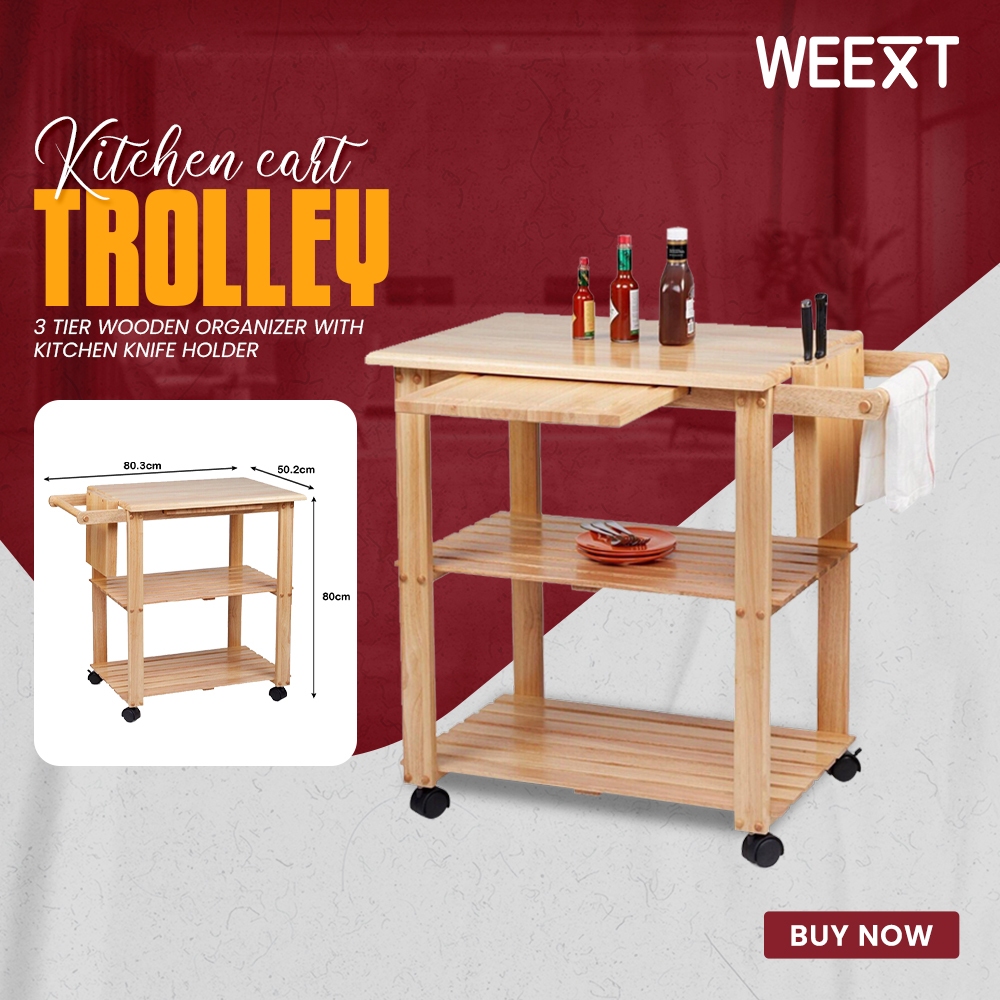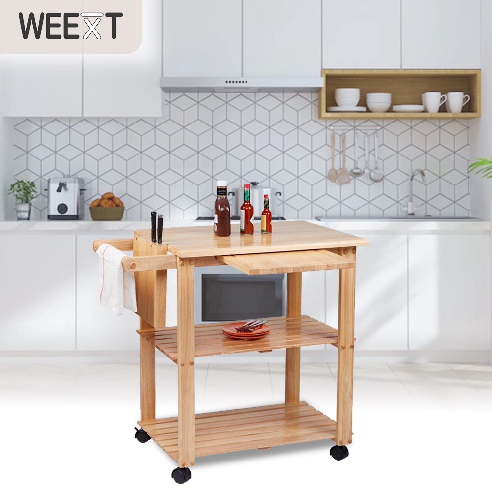 WEEXT 3-Tier Wooden Kitchen Trolley Organizer with Knife Holder