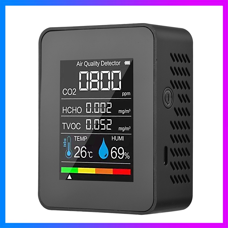 F&L Portable Air Quality Monitor Indoor CO2 Detector 5 in 1 Formaldehyde HCHO TVOC Tester LCD Temperature Humidity Tester Rechargeable CO2 Alarm Meter for Room Office Greenhouse Warehouse