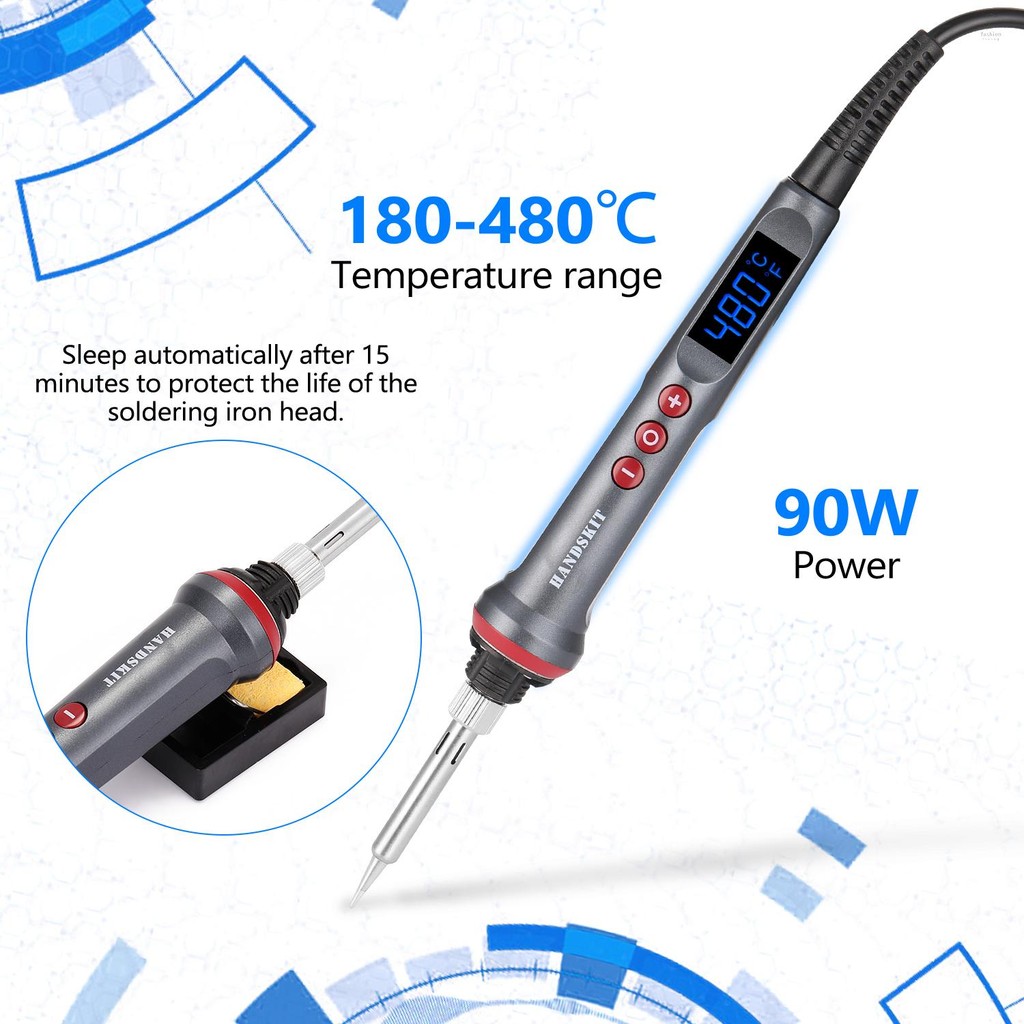 HANDSKIT 90W LED Digital Soldering Iron Set Adjustable Temperature Electric Soldering Iron with Automatic Sleep