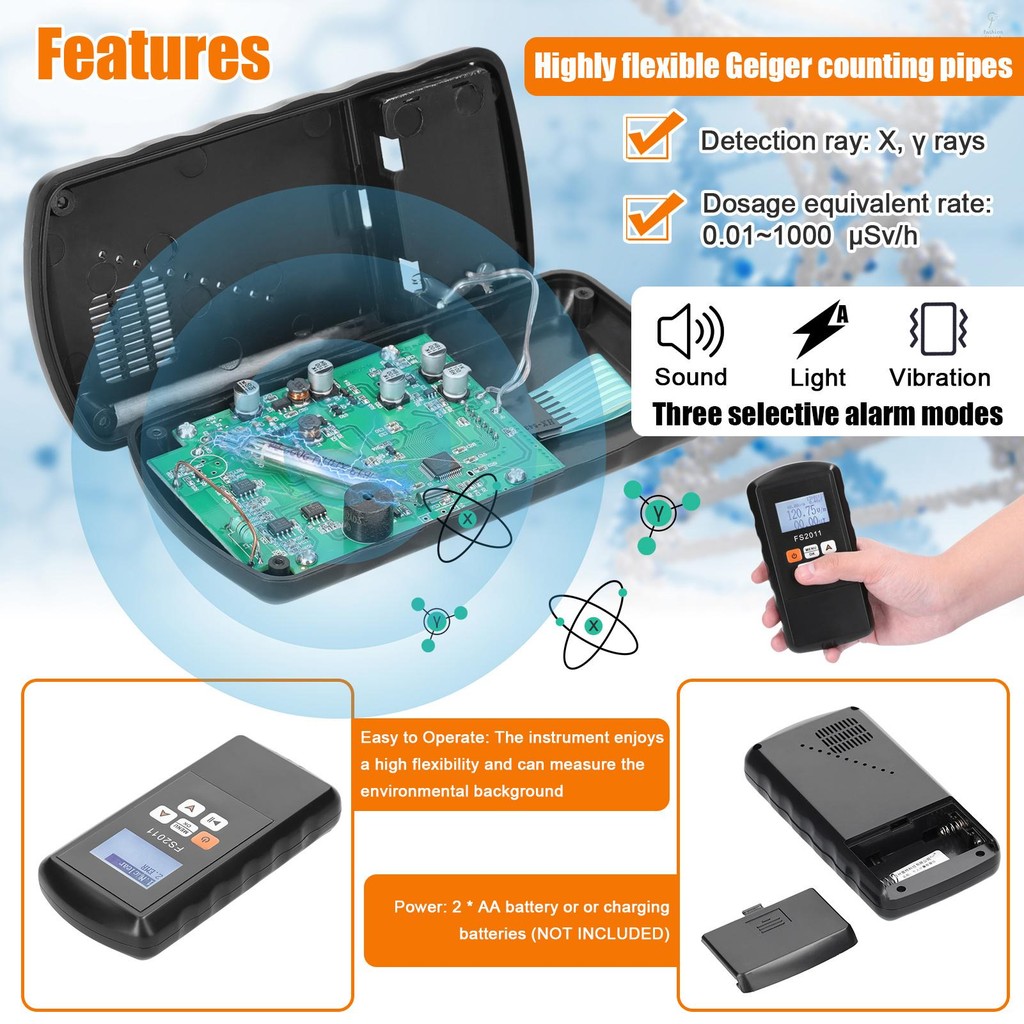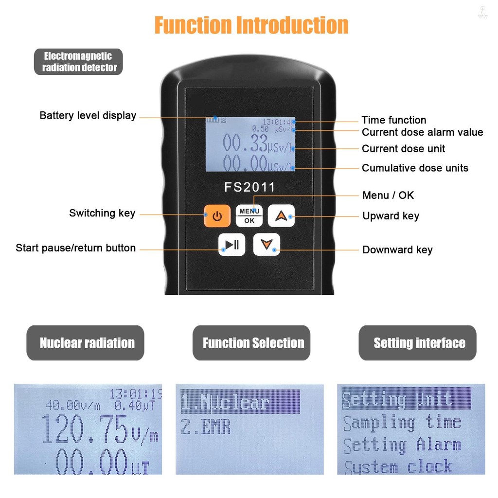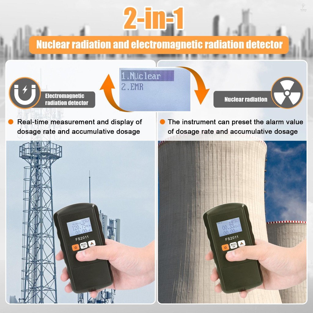 Handheld Portable 2in1 Nuclear Radiation Electromagnetic Radiation Detector Household Laboratory Hospital Multi-function Marble Radioactive Geiger Counter Digital Large Screen Nucl