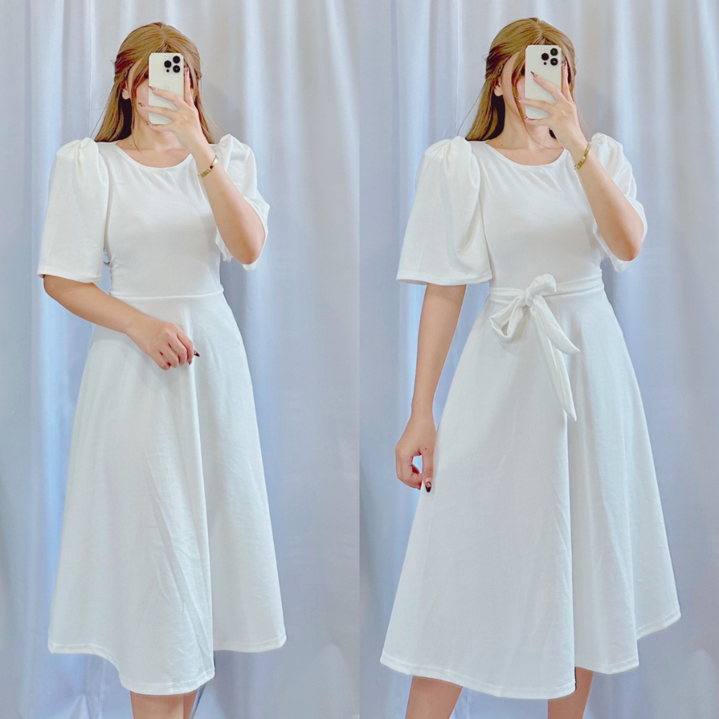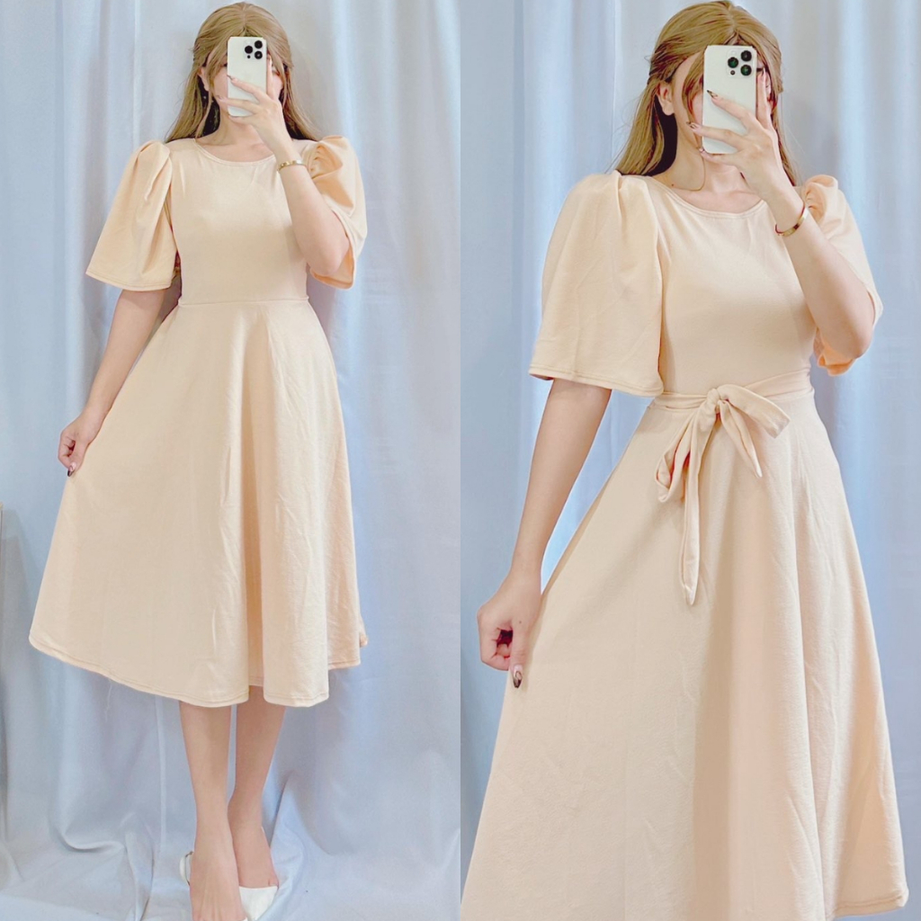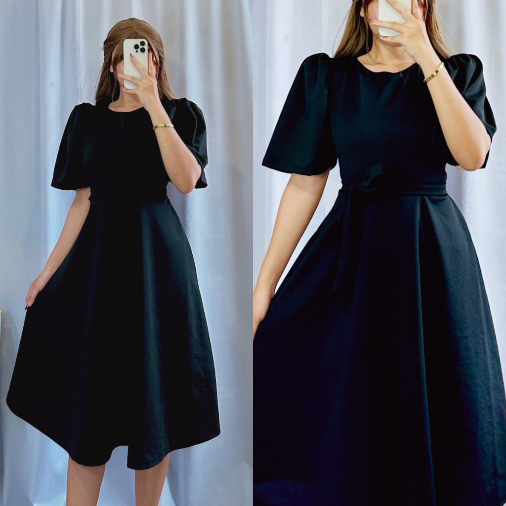Plain Casual Padded Puff Sleeve Dress | DA&ABOUT THE FIT (Cristina)