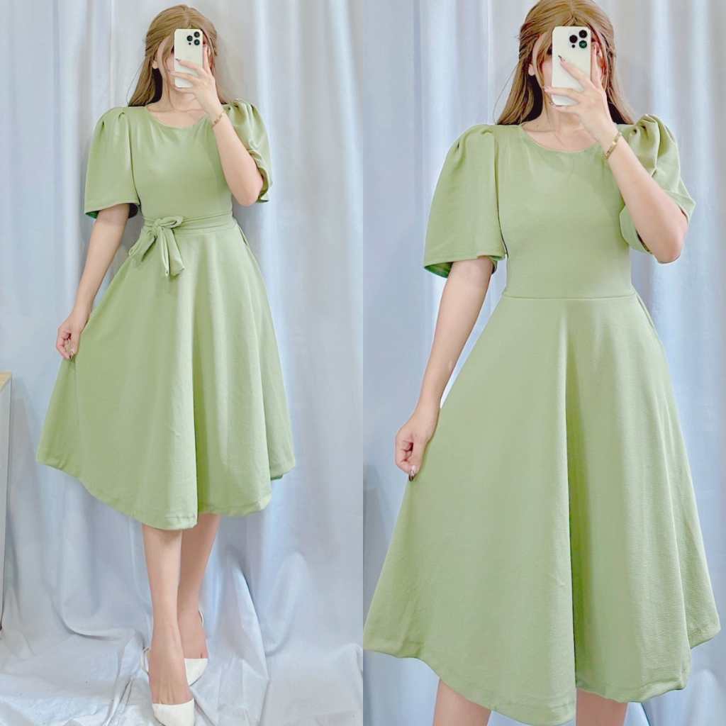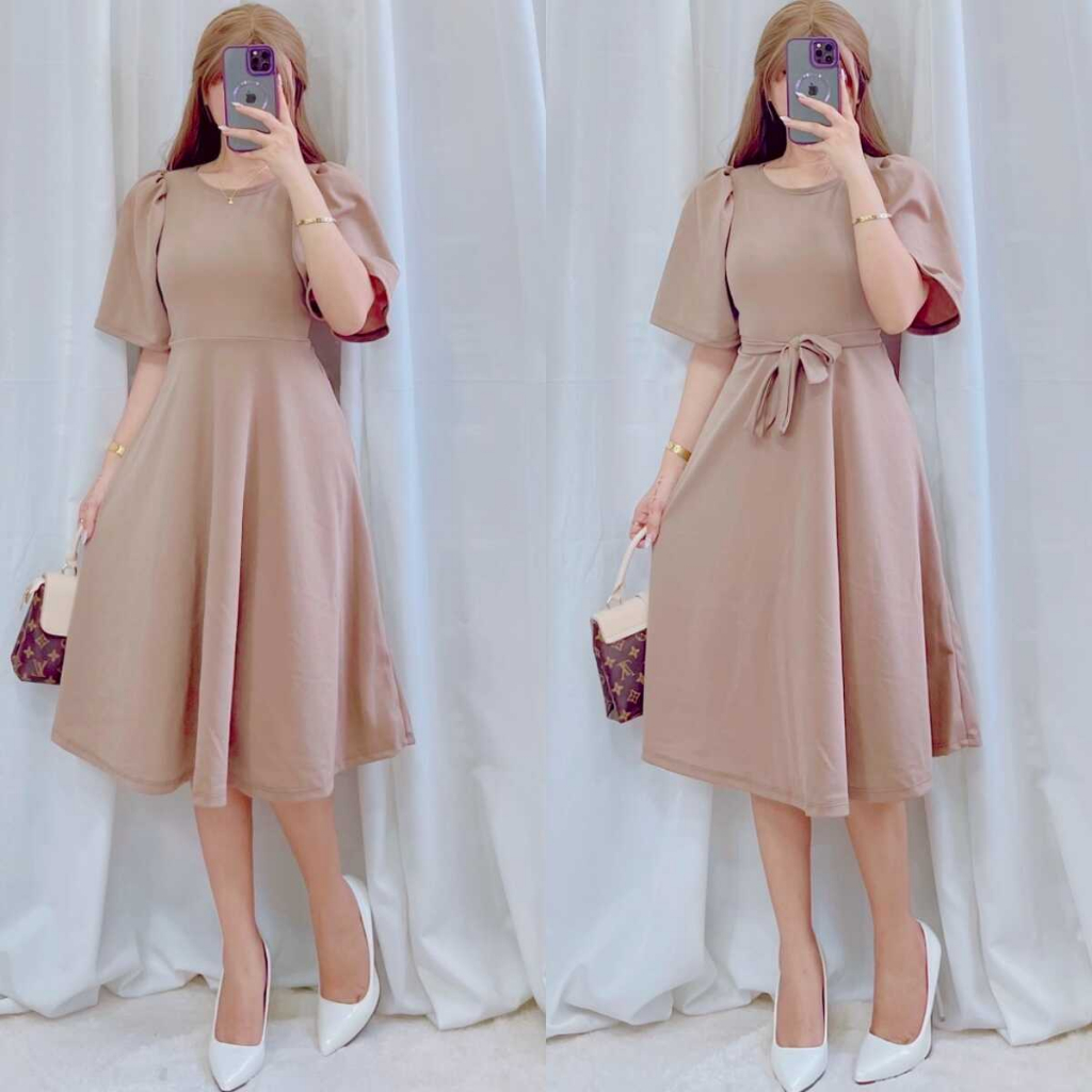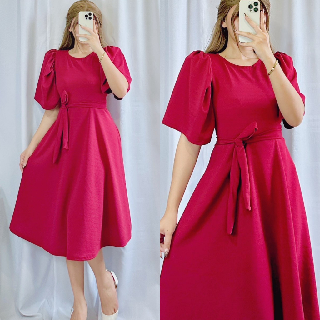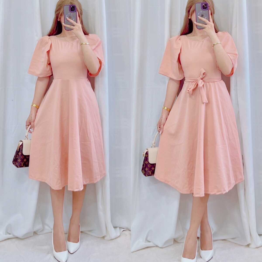 Plain Casual Padded Puff Sleeve Dress | DA&ABOUT THE FIT (Cristina)