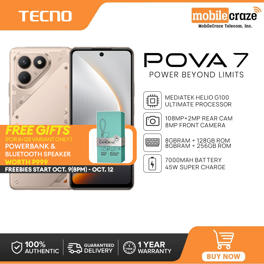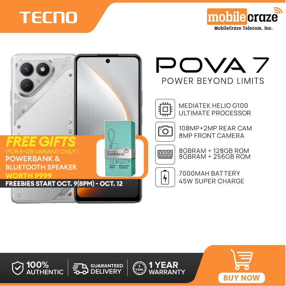TECNO POVA 7 Smartphone | 8GB+128GB / 8GB+256GB | MTK Helio G100 Ultimate | 108MP Main Cam-era