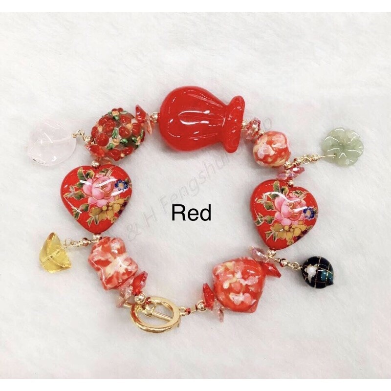 Lucky charm bracelet with money bag/ japan flower overall good luck bracelet