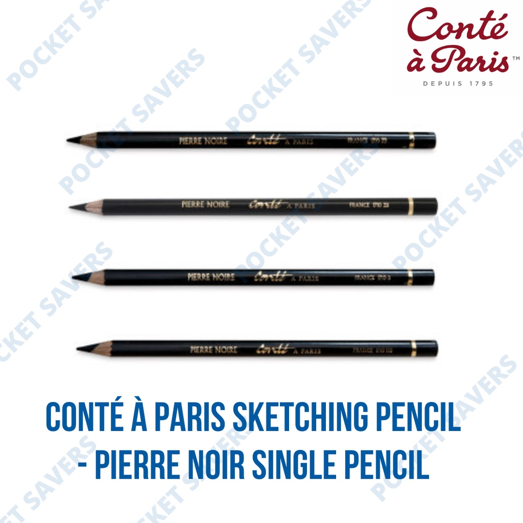 CONTE A PARIS Pierre Noire Sketching Pencils (B, 2B, 3B, HB, Soft Lead, Matt Black)