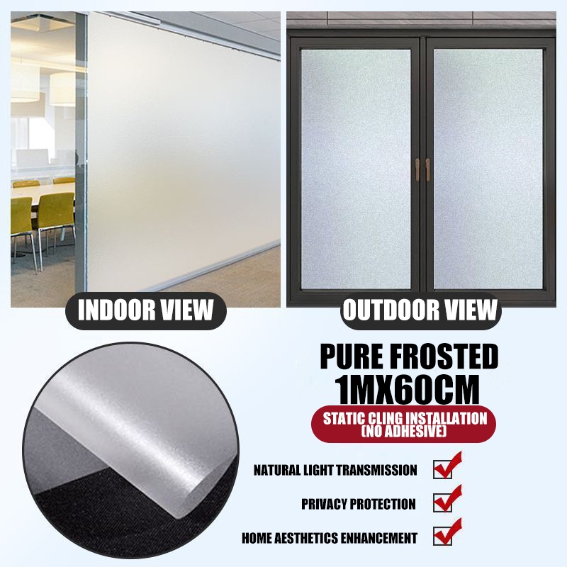 Frosted Glass Sticker Privacy Window Film – Static Cling Waterproof Anti-UV for Bathroom Office