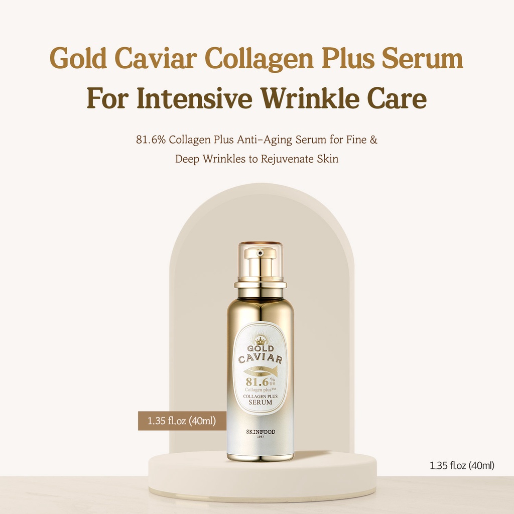 [SKINFOOD Official] Gold Caviar Collagen Plus Serum 40ml / 81.6% Collagen Plus Anti-Aging Serum for Deep Wrinkle & Fine Wrinkle / Plumping Skin / Deep Hydrating Serum with Collagen & Gold