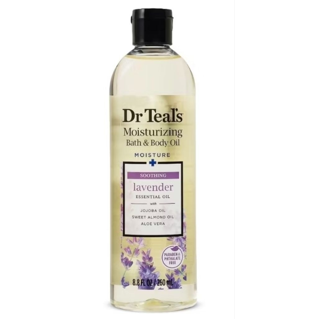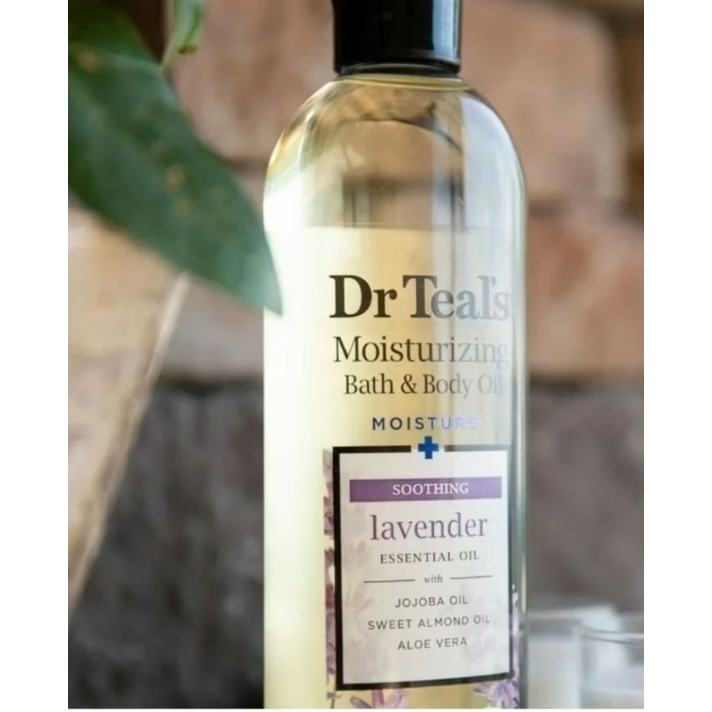dr teals moisturizing bath & body oil soothing lavender essential oil/rejuvenating eucalyptus 260ml
