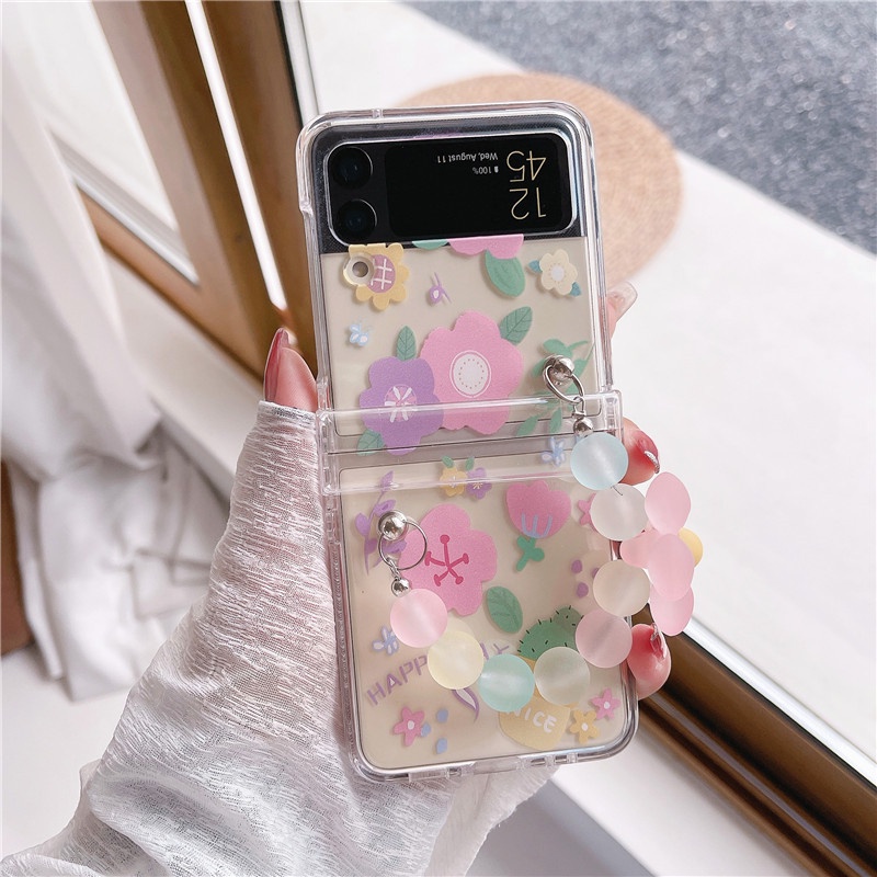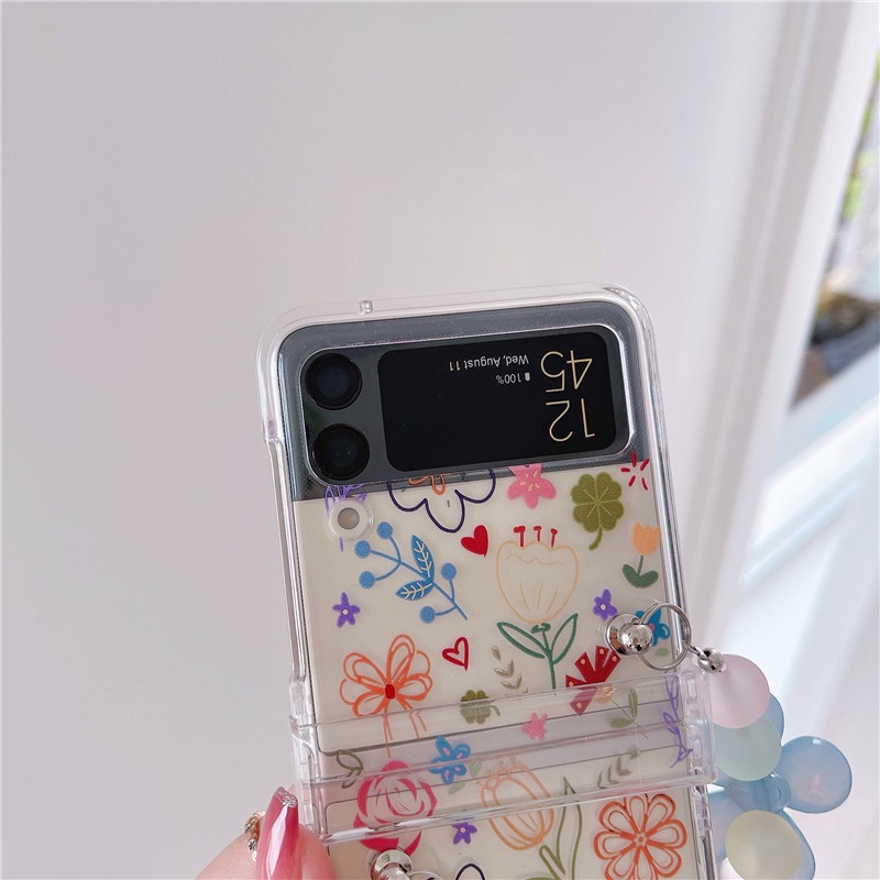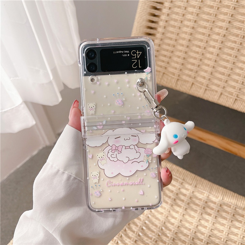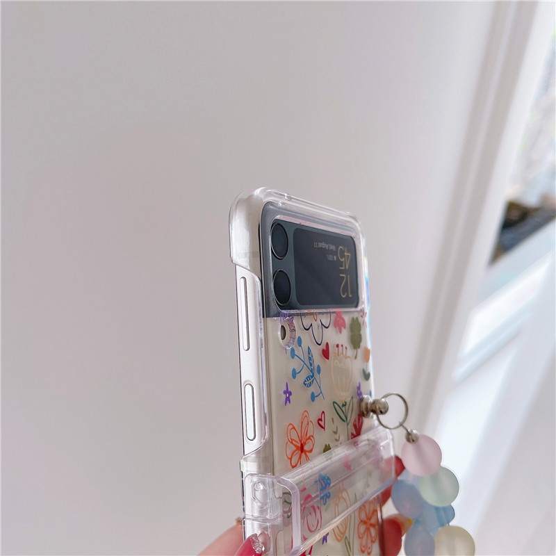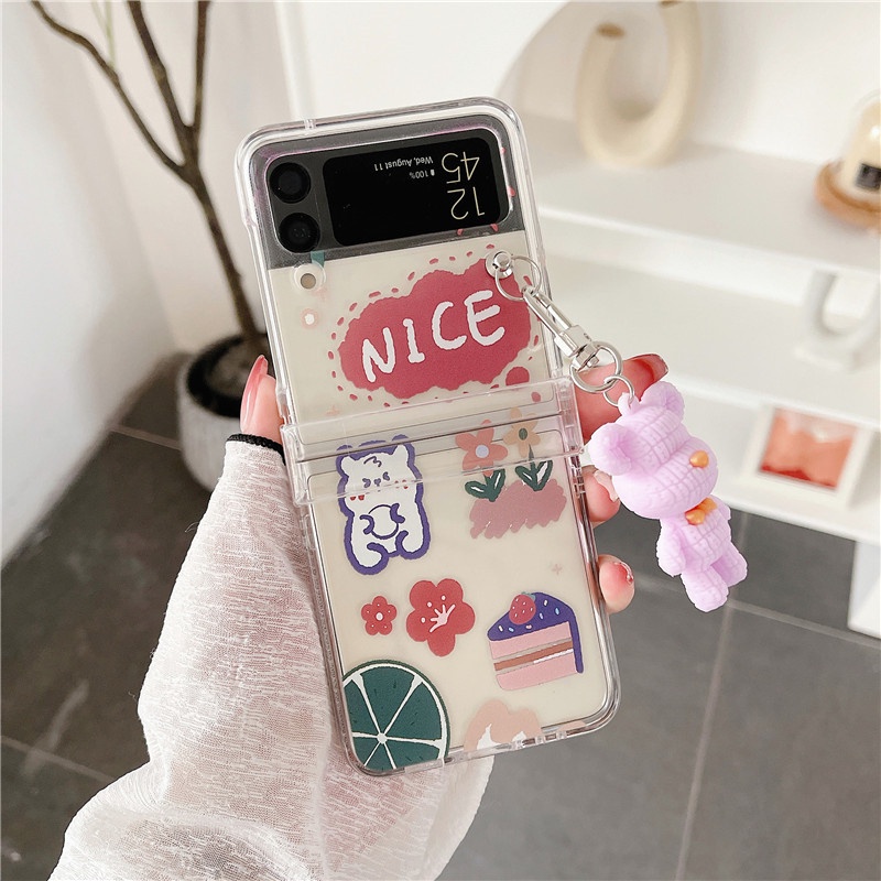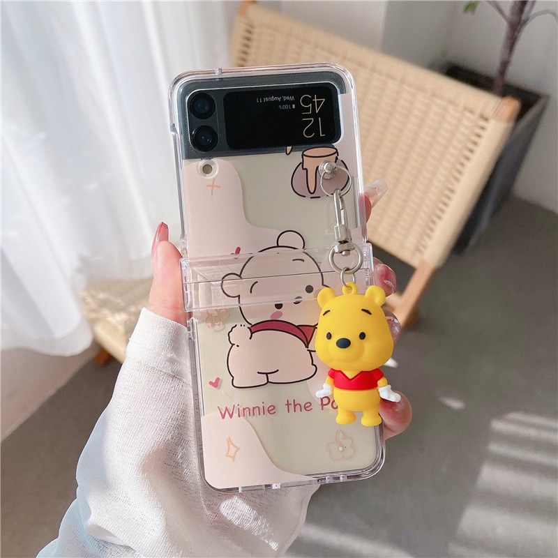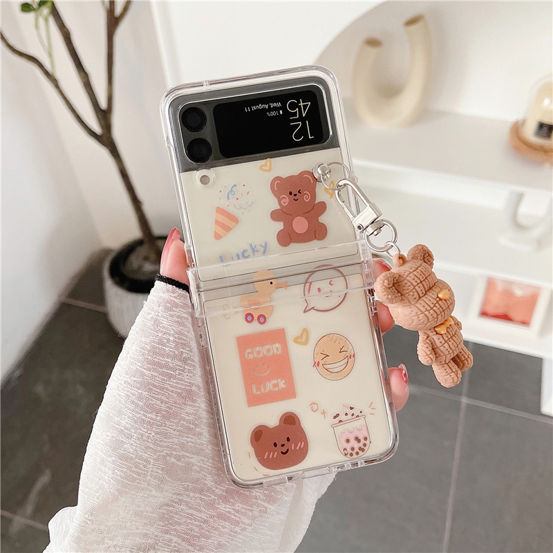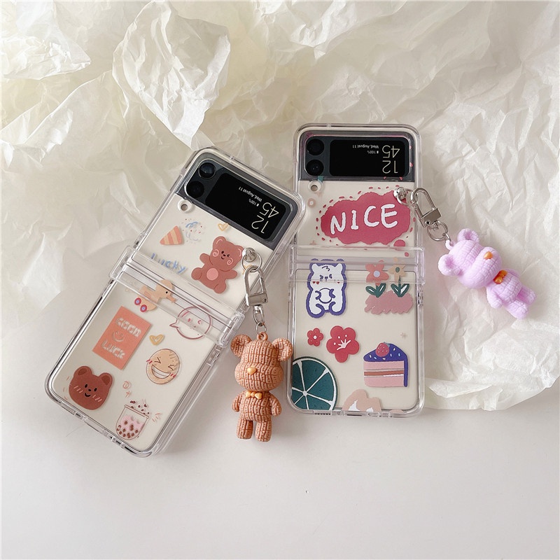 Cute Cartoon Bear Doll Pendant Clear Casing Samsung Galaxy Z Flip 4 Z Flip 3 Zflip 3 Withcolorful Bracelet Protective Shockproof Samsung Z Flip 4 Flip 3 Phone Case