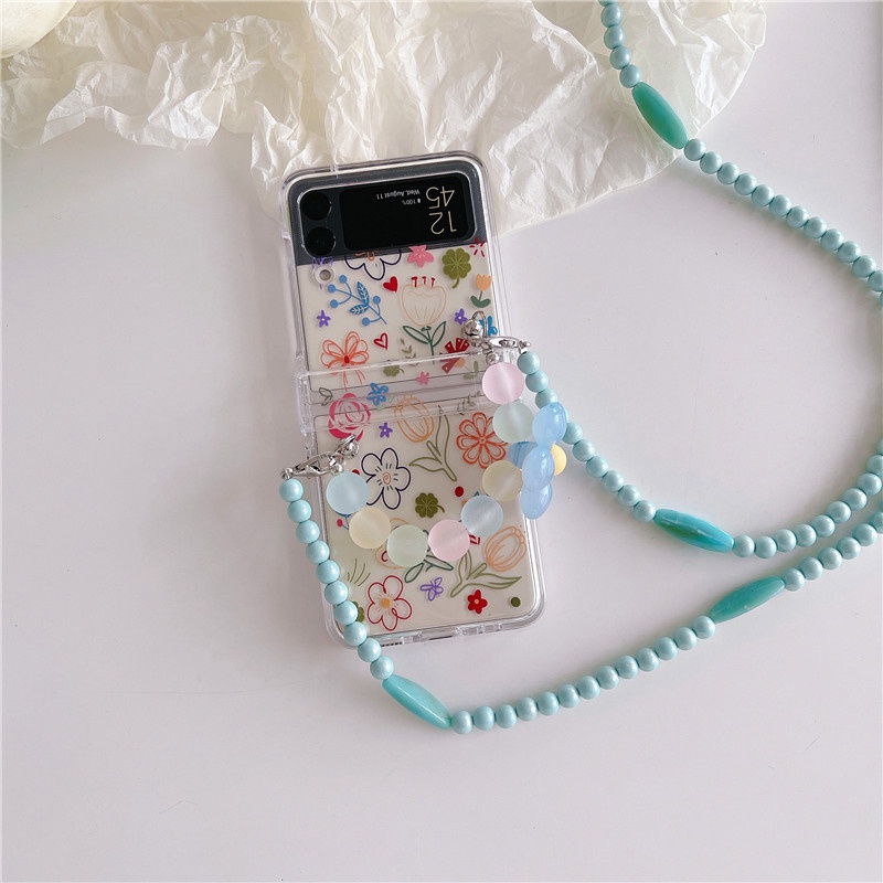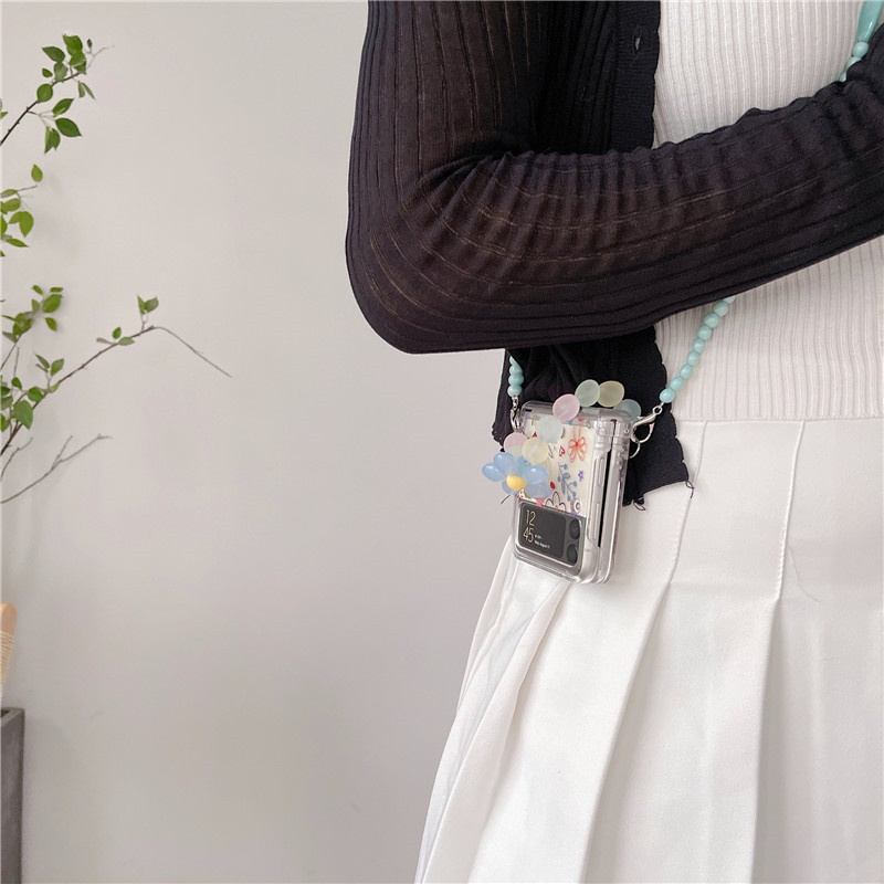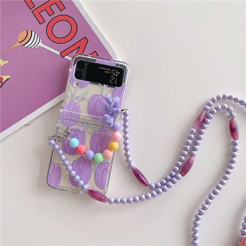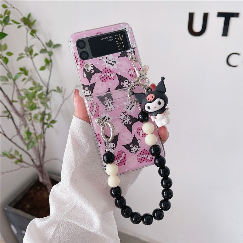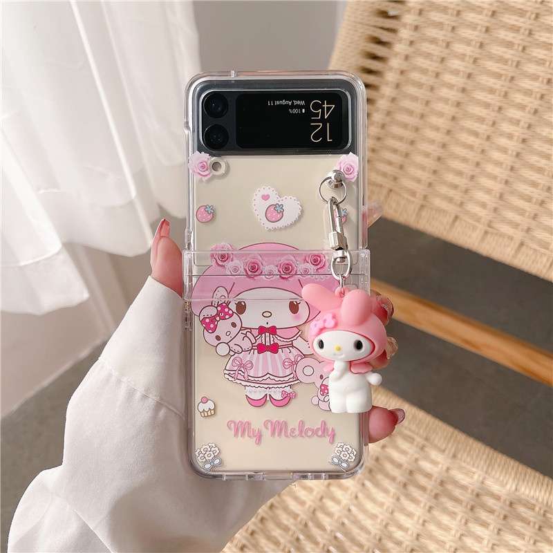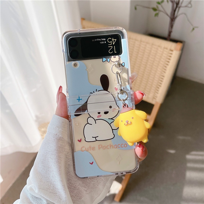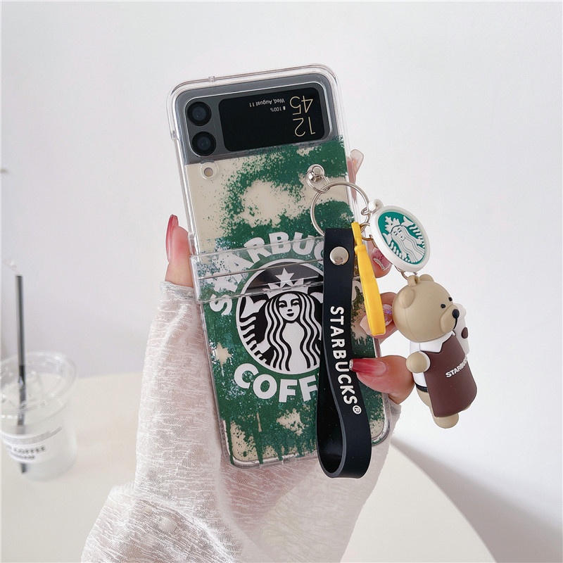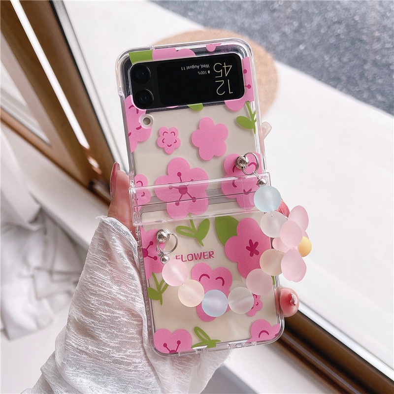 Cute Cartoon Bear Doll Pendant Clear Casing Samsung Galaxy Z Flip 4 Z Flip 3 Zflip 3 Withcolorful Bracelet Protective Shockproof Samsung Z Flip 4 Flip 3 Phone Case