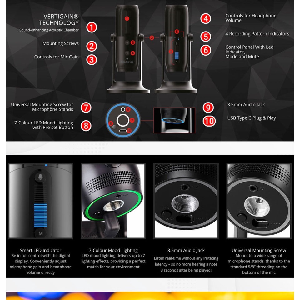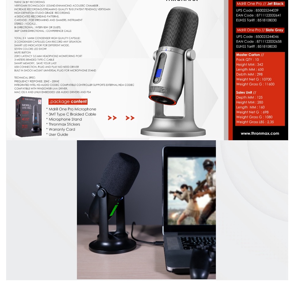 Thronmax Mdrill One Pro Usb Microphone Jet Black 96khz M2p Pc Mac Streaming
