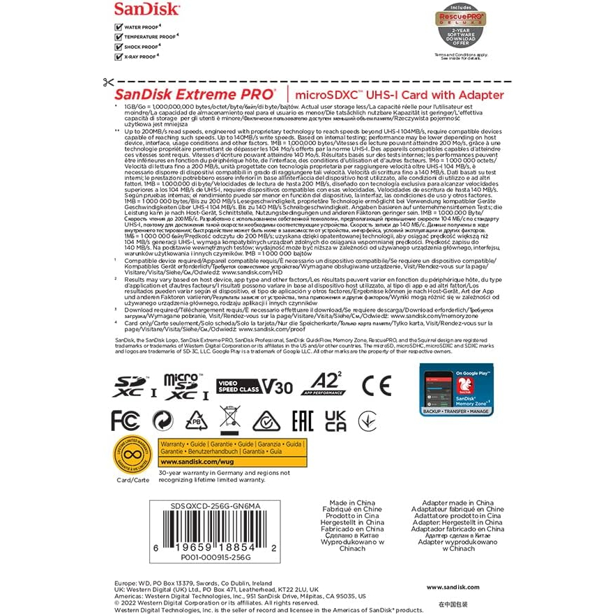 Sandisk Extreme Pro 128GB/256GB/512GB 200MB/S X10 UHS-I U3 Micro SDXC SDSQXCD-256G - HENRY'S CAMERAS