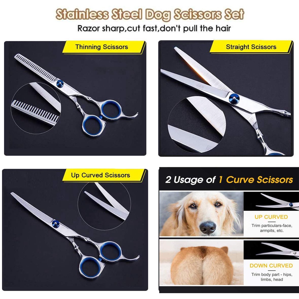 Pet Grooming Scissors Curved Dog Cat Grooming Scissors Pet Hair Cutting Barber Tools