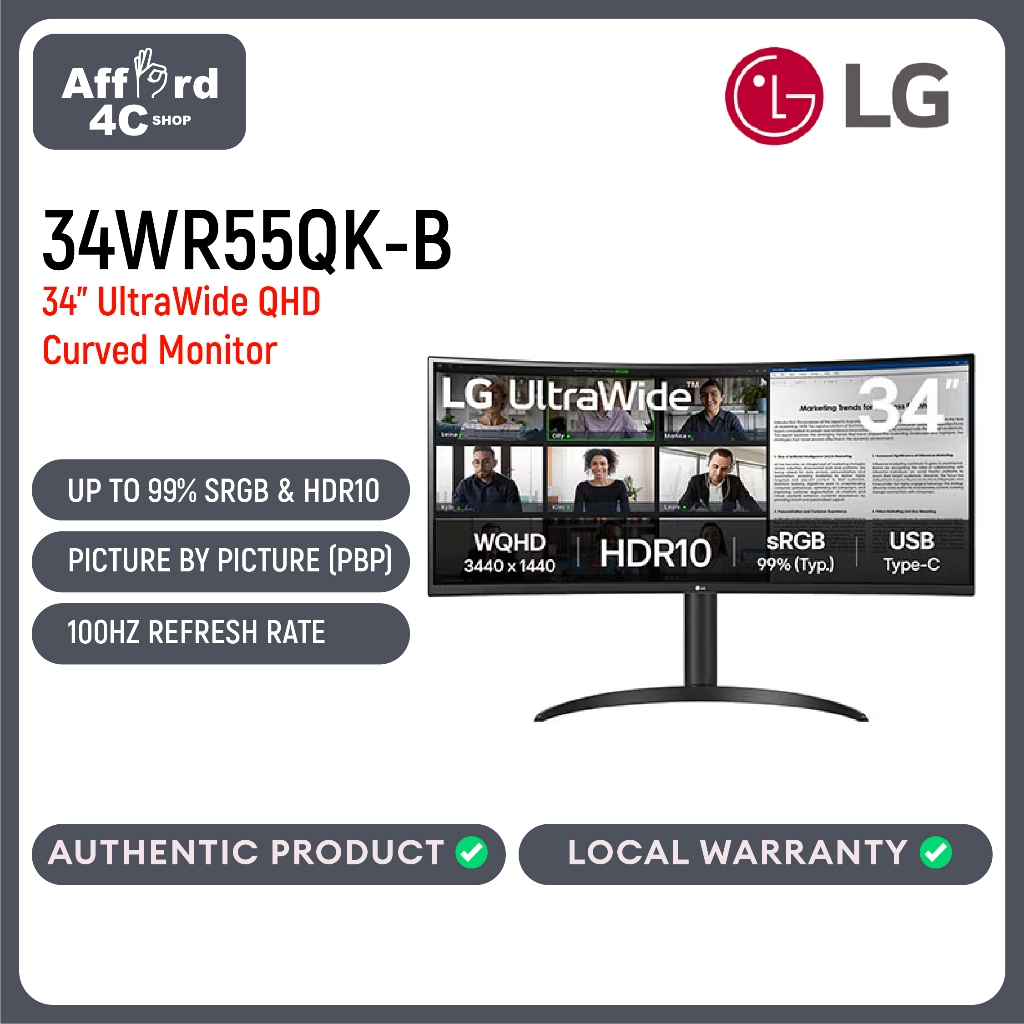 LG 34WR55QK-B 34 inch UltraWide™ Curved Monitor with WQHD HDR10 Display 100Hz Refresh Rate