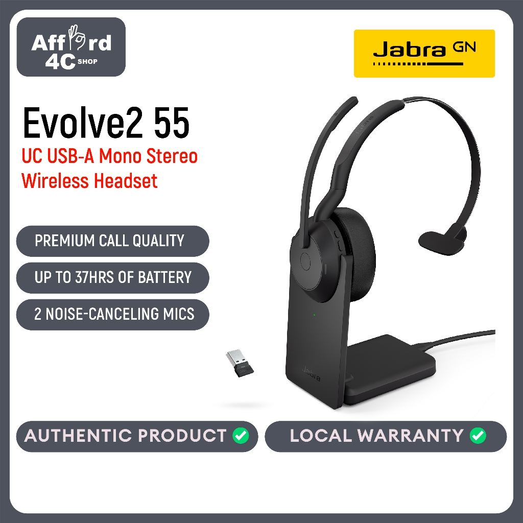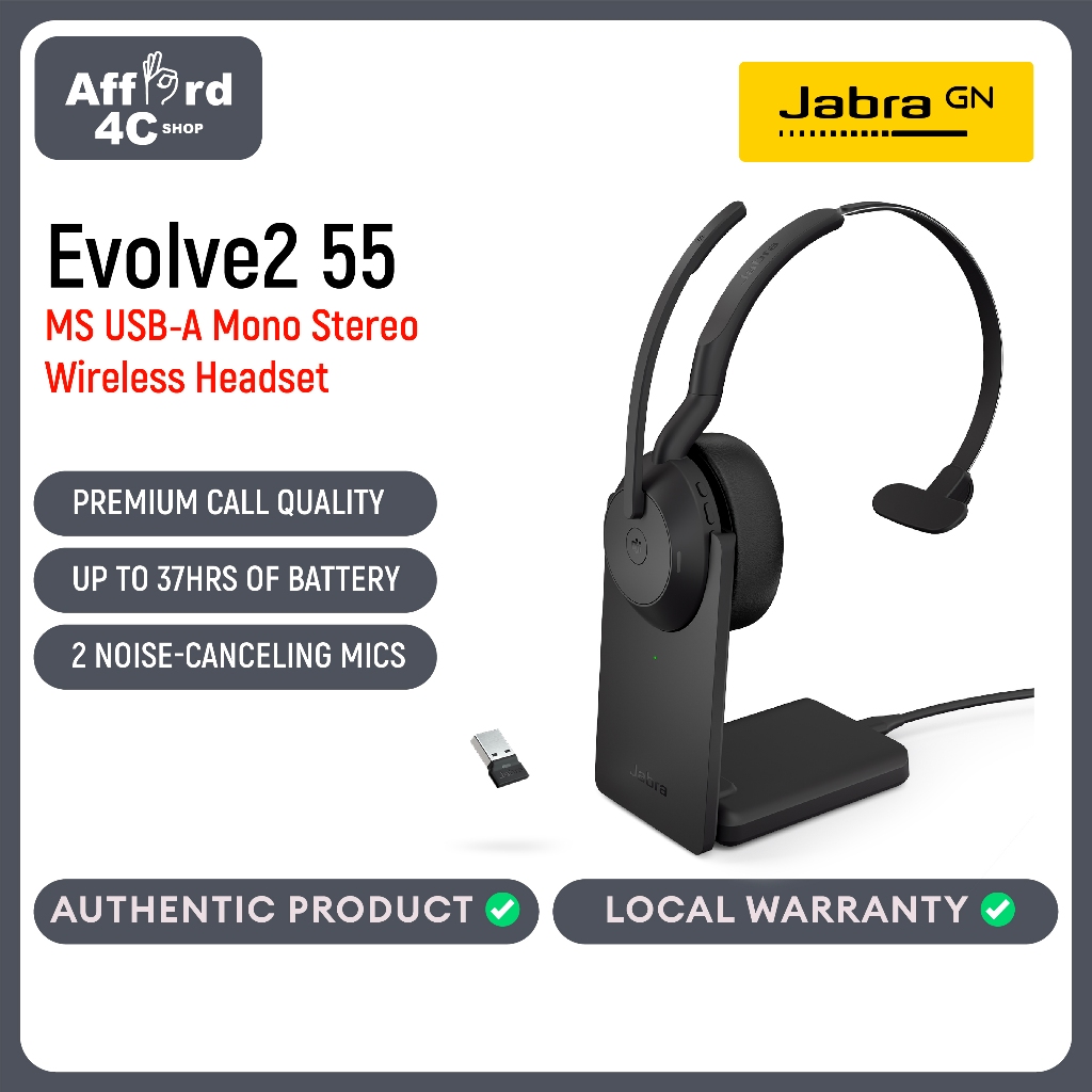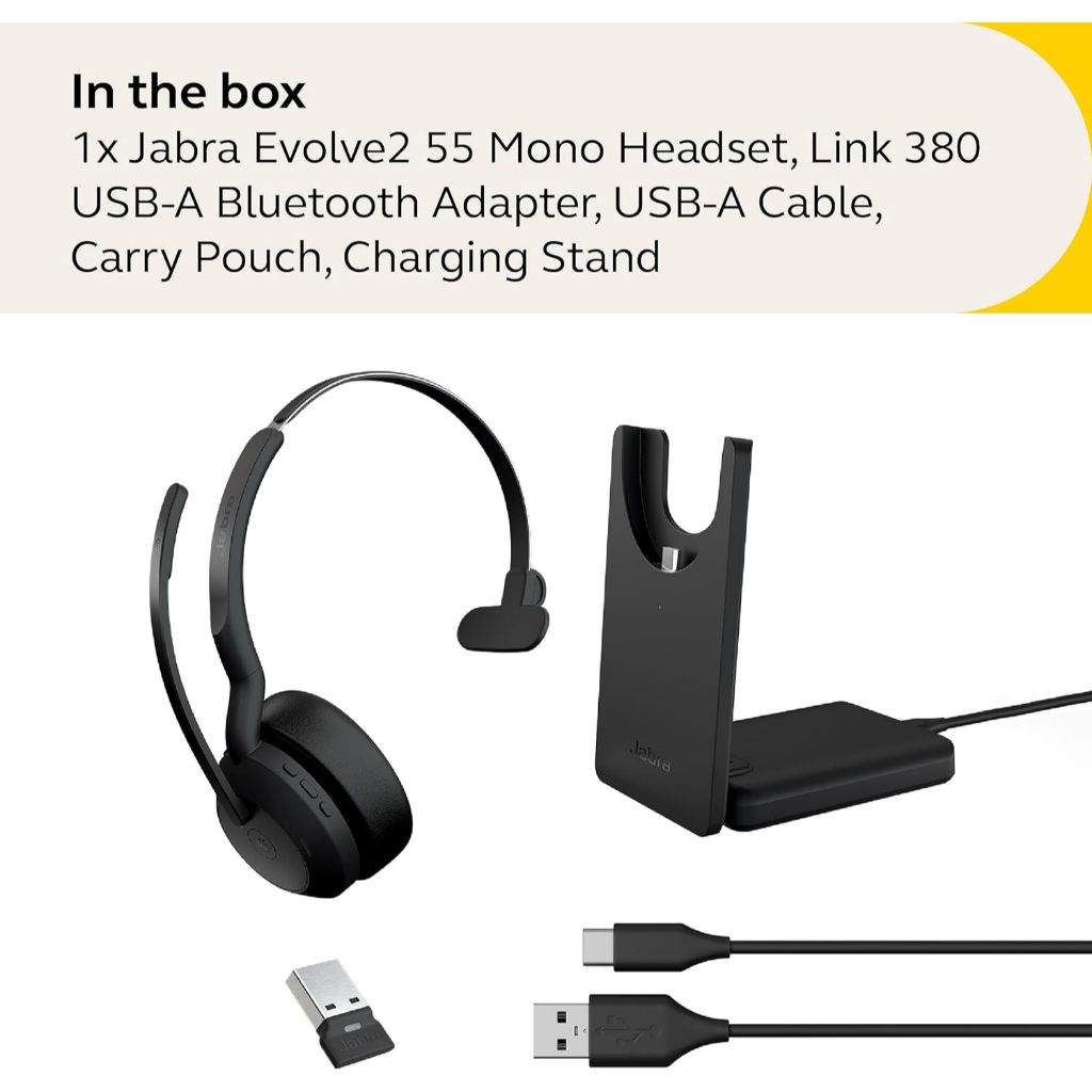 Jabra Evolve2 55 Mono Wireless Headset Link 380 USB-A with Charging Stand AirComfort Technology