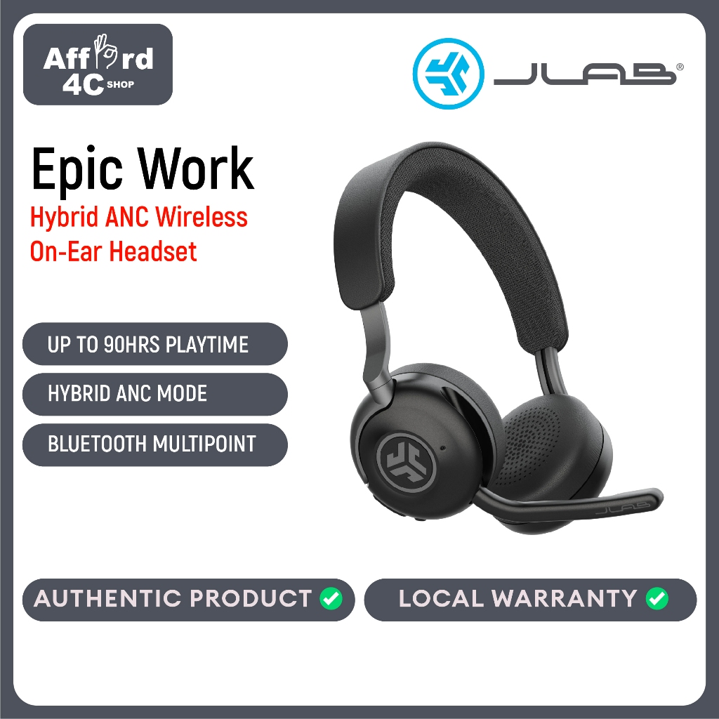 JLab Epic Work Wireless Headset with Microphone Smart Active Noise Cancellation Charging Hub 90+ Pla