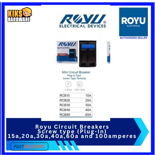 Royu Plug-In Breaker 2P 220v 60amperes 100amperes 60amperes 40amperes 30amperes 20amperes 15amperes