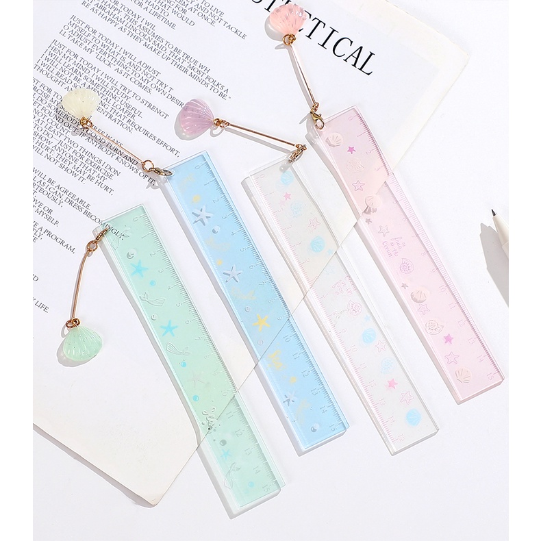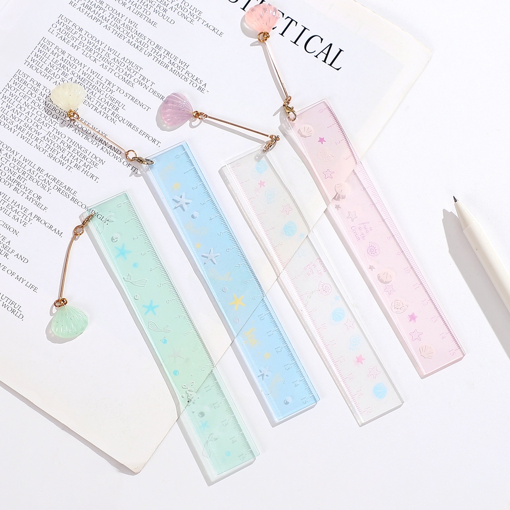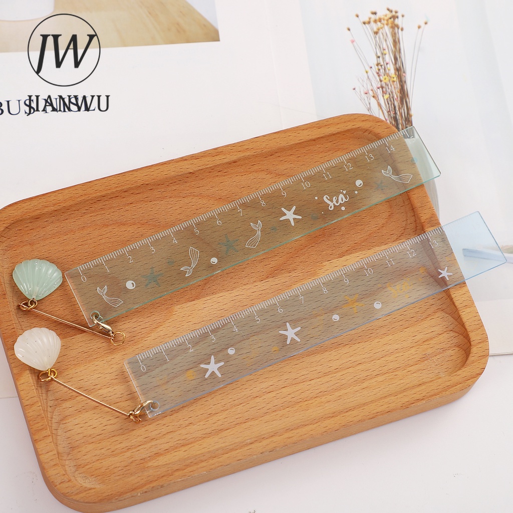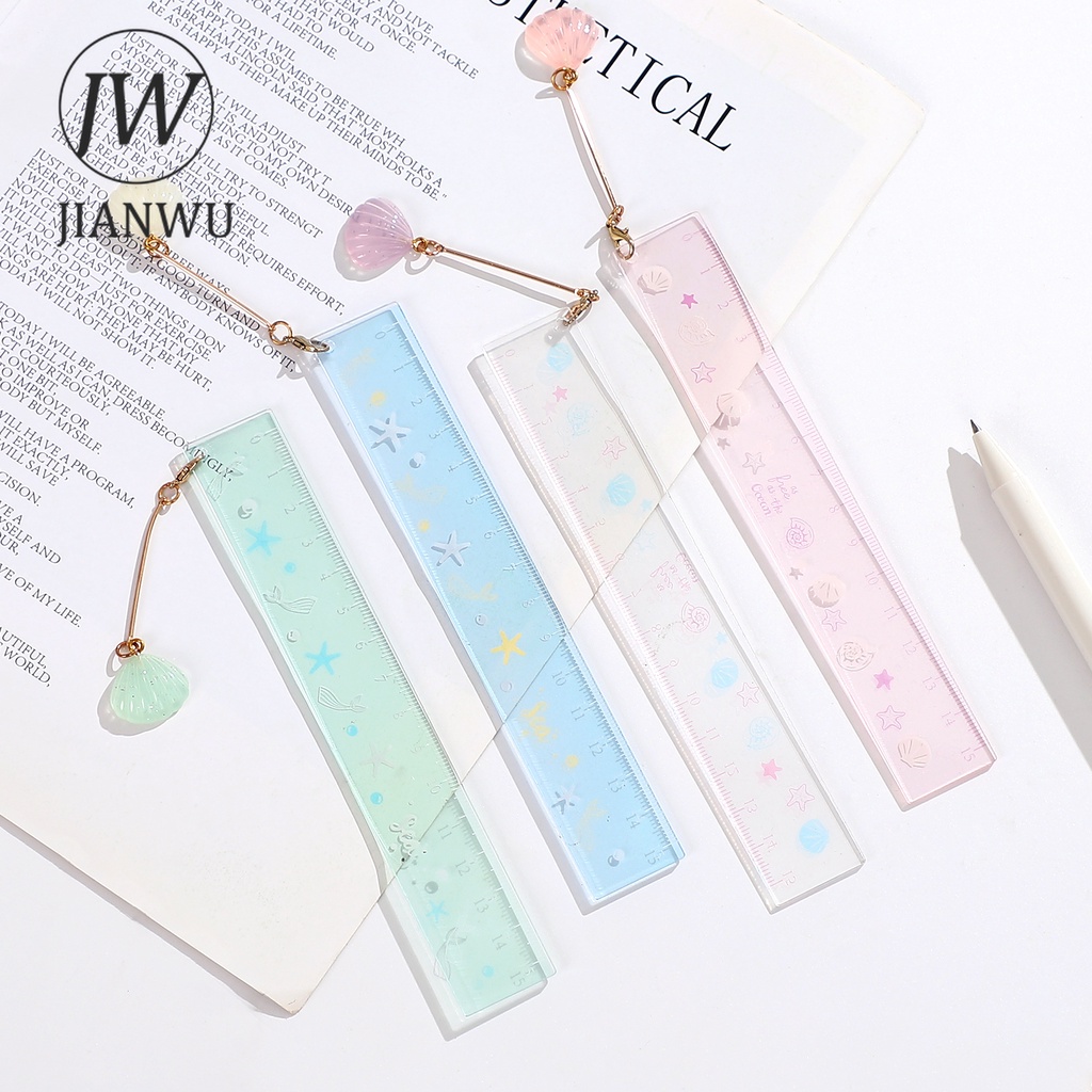 JIANWU random 1 Pc 15cm Transparent Acrylic Pendant Ruler Student Drawing Measuring Tools Straightedge Cute Rulers Stationery