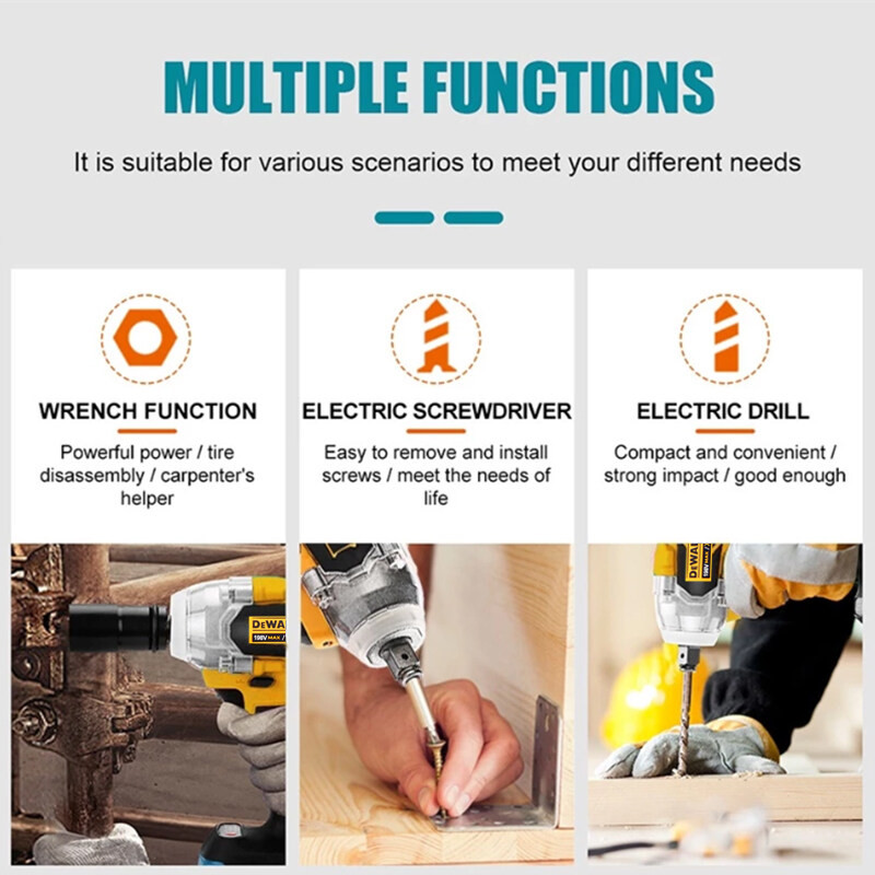 DeWalt Impact Wrench Heavy Duty Japan Electric Wrench Power Tools 2 Battery Motorcycle Rechargeable
