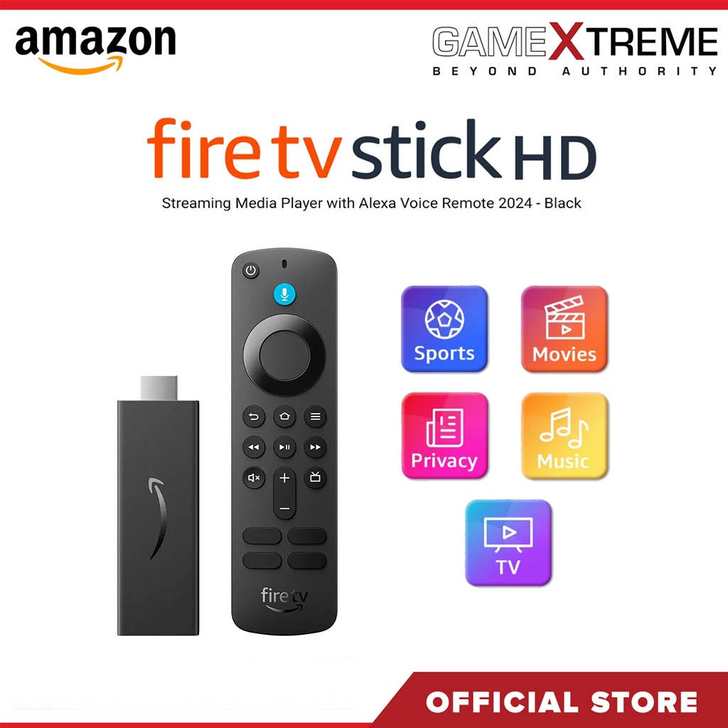 Amazon Fire TV Stick HD Streaming Media Player with Alexa Voice Remote 2024 - Black