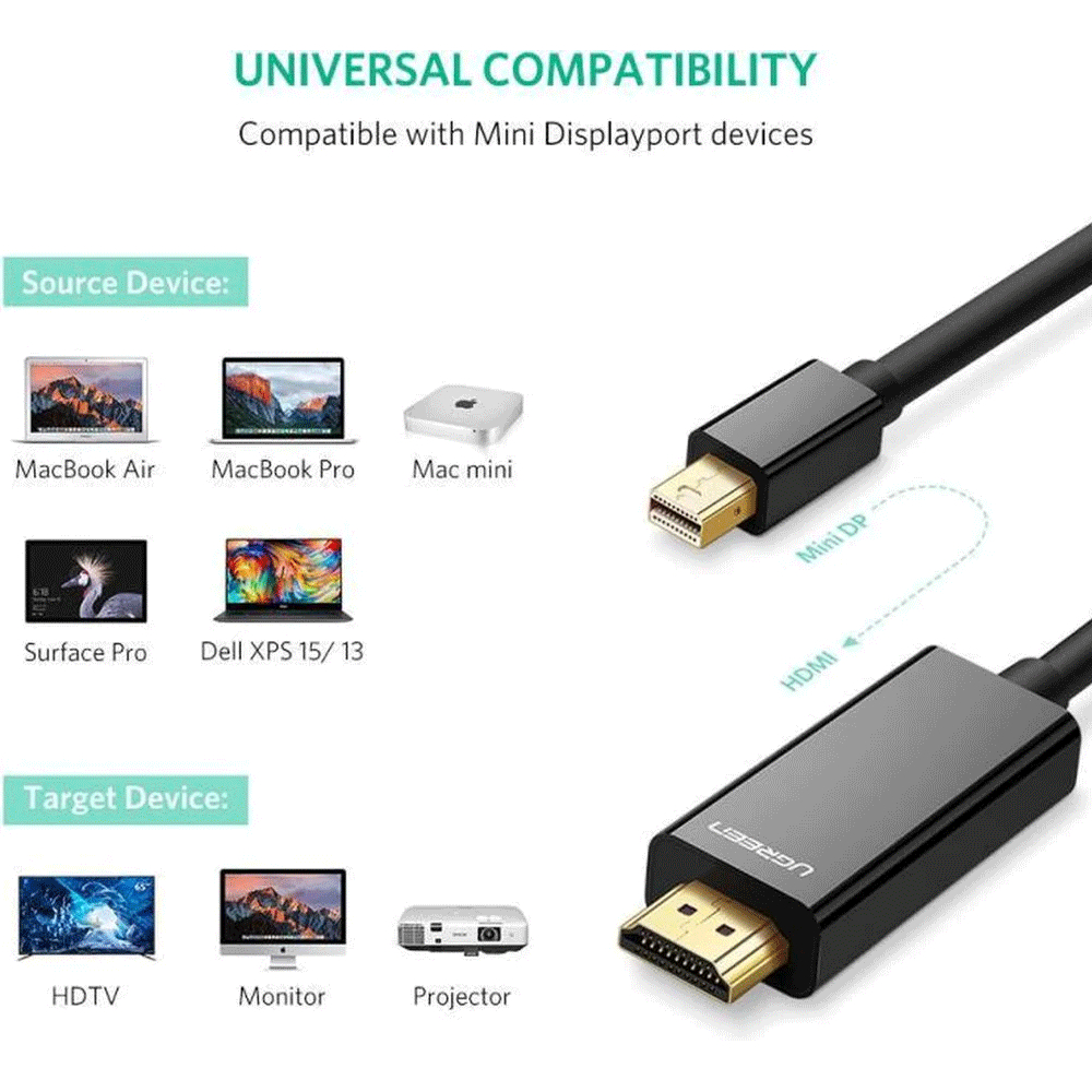 UGreen Mini DP To HDMI Cable (4K) - 1.5m Black MD101/20848