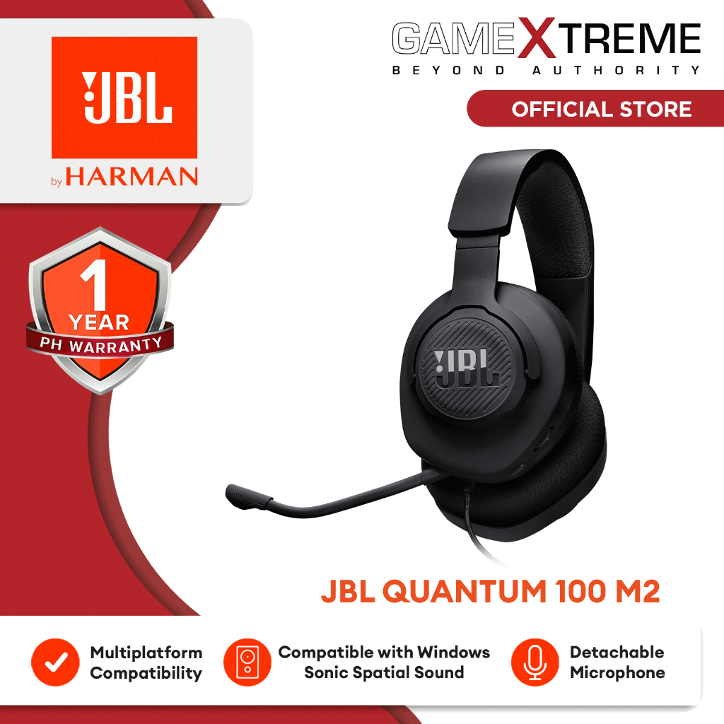 JBL Quantum 100 M2 - Wired Gaming Headset with a Detachable Mic Over-the-Ear Headphone