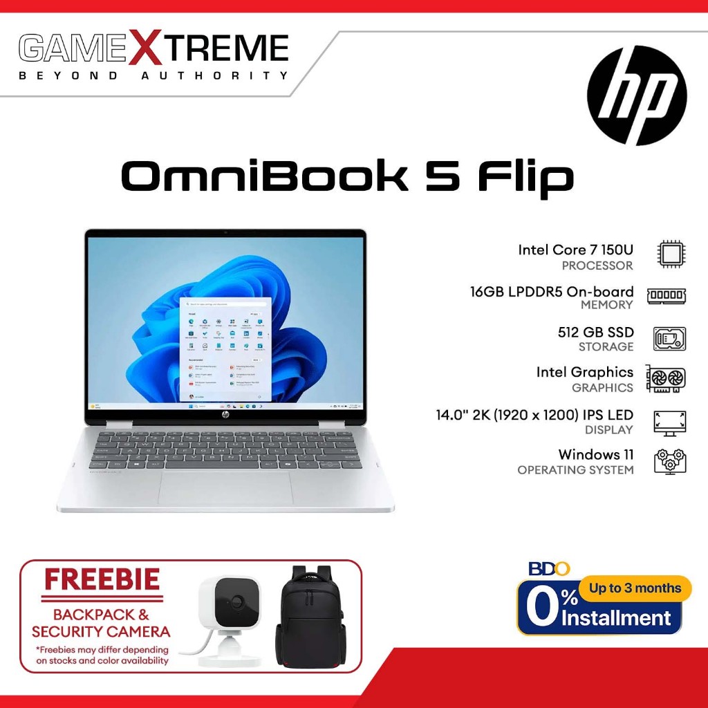 HP OmniBook 5 Flip 2-in-1 Laptop 14" 2K Touch Screen Intel Core 7-150U 16GB/512GB SSD Intel Graphics